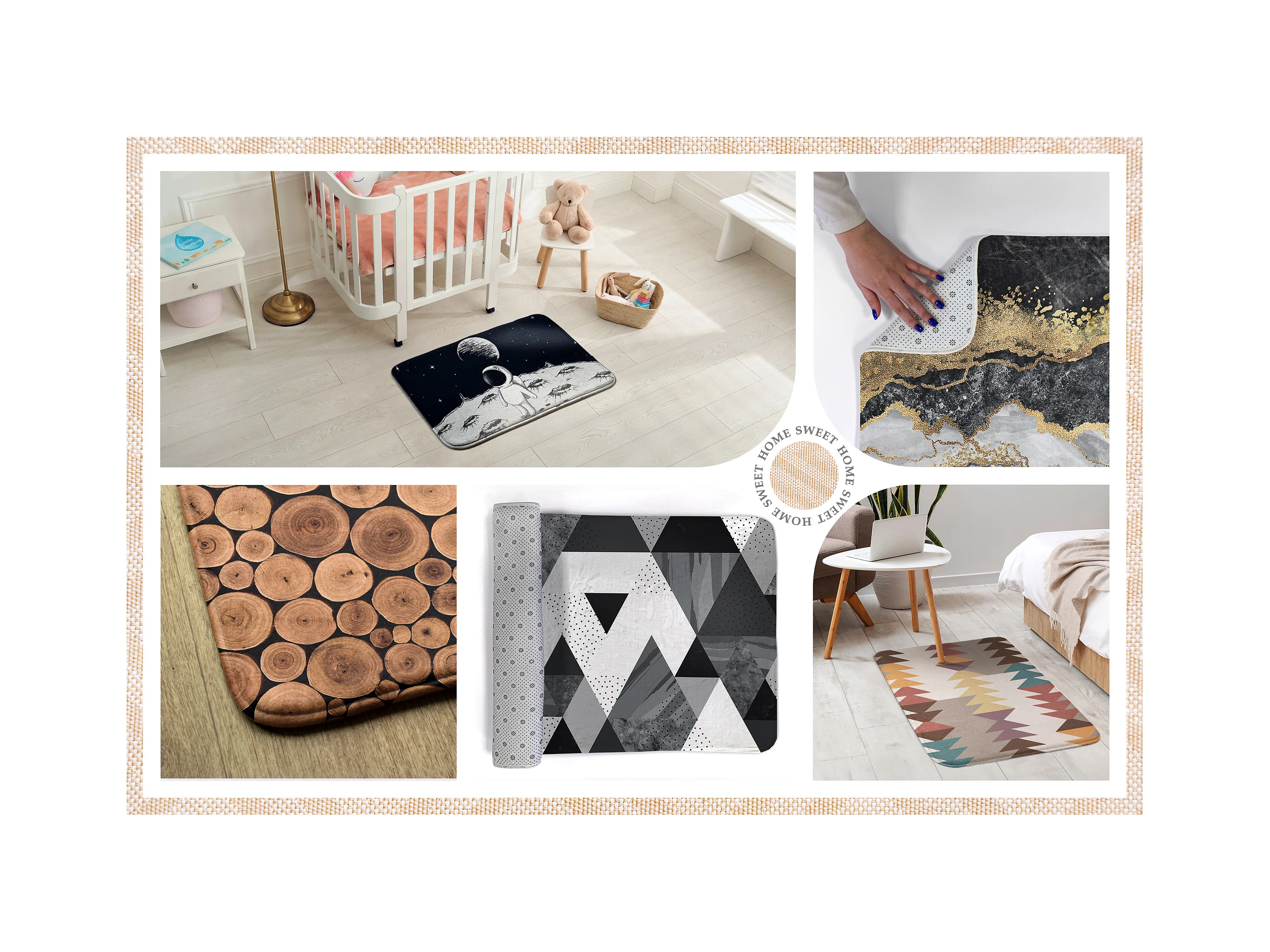 Slaapkamerkleed, 90x60 cm. Abstracte penseelstreken. Trendy vloerkleed voor de slaapkamer, woonkamer.