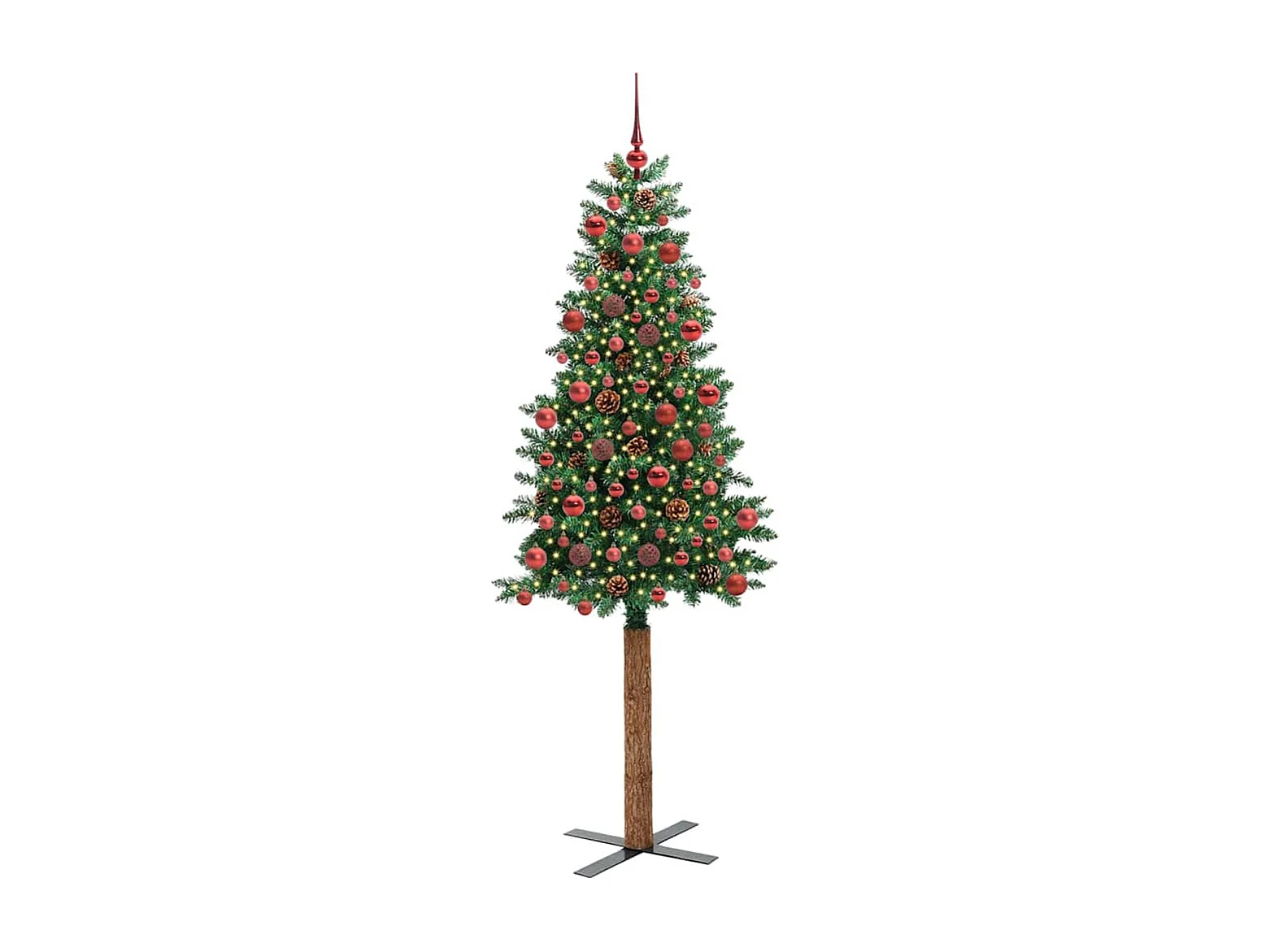 Slanke Kerstboom Groen 180 cm PVC en massief dennenhout