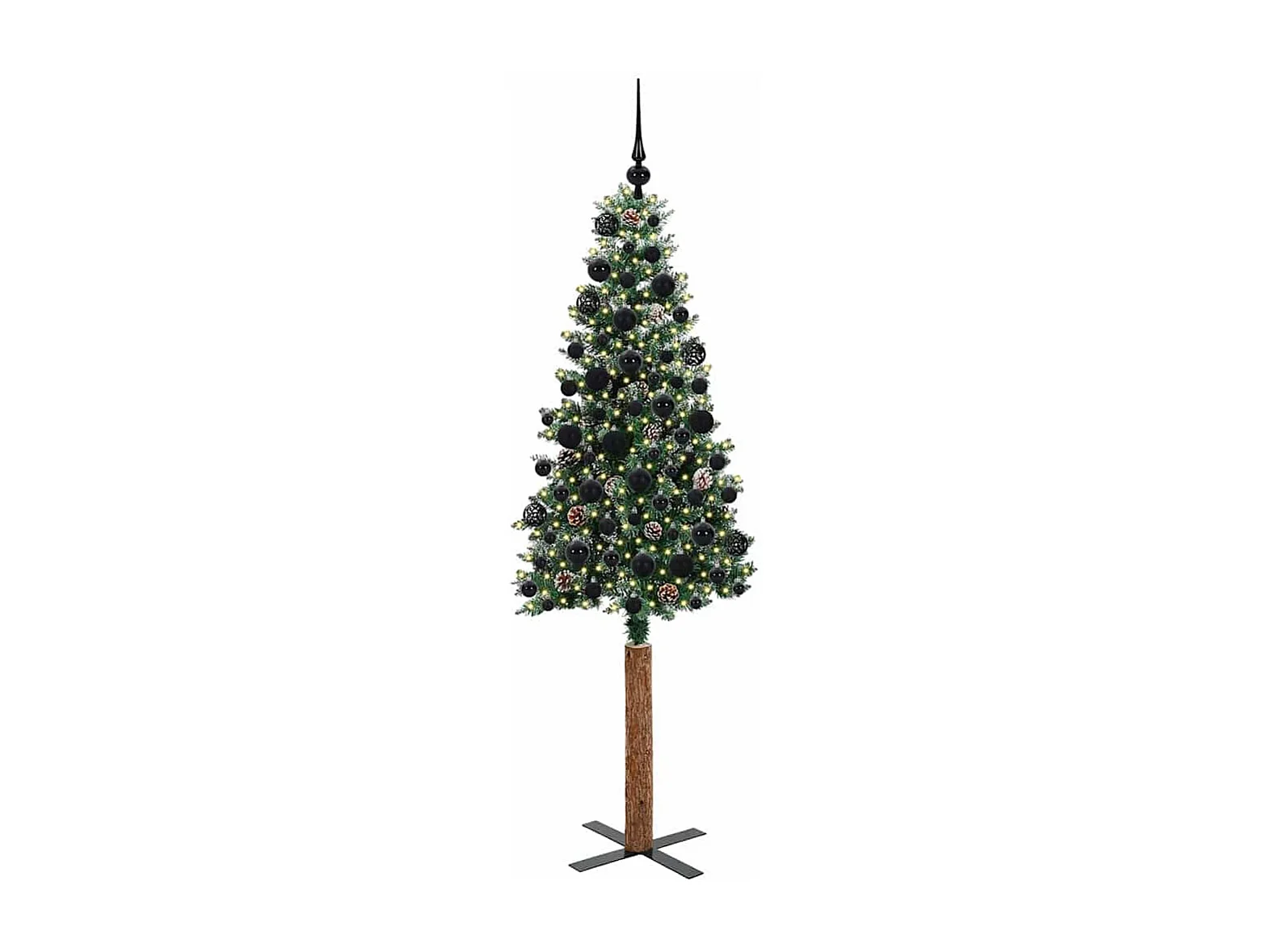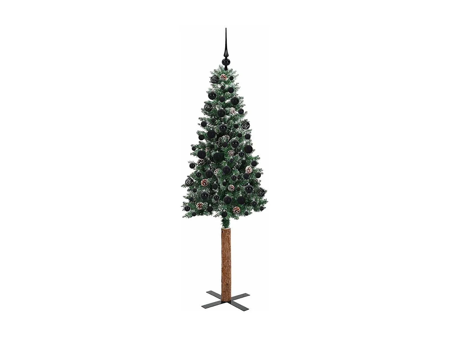 Slanke Kerstboom Groen en Wit 180 cm PVC en massief dennenhout