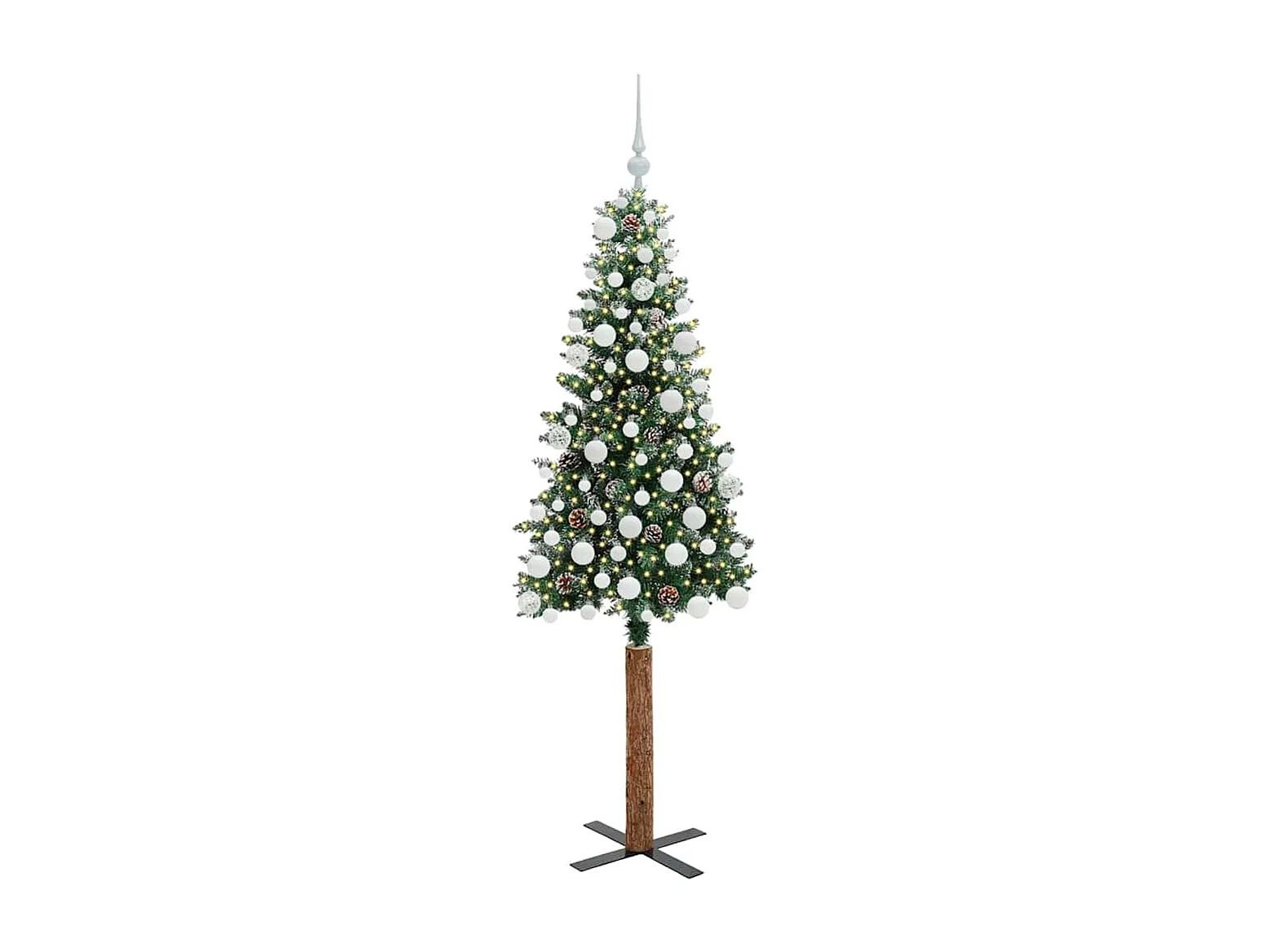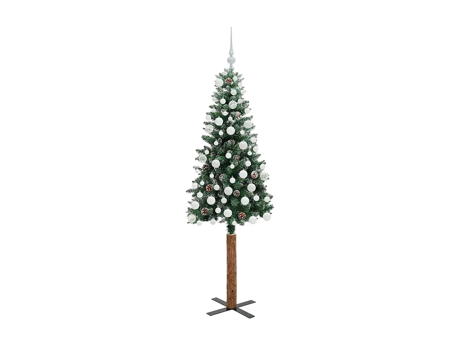 Slanke Kerstboom Groen en Wit 180 cm PVC en massief dennenhout