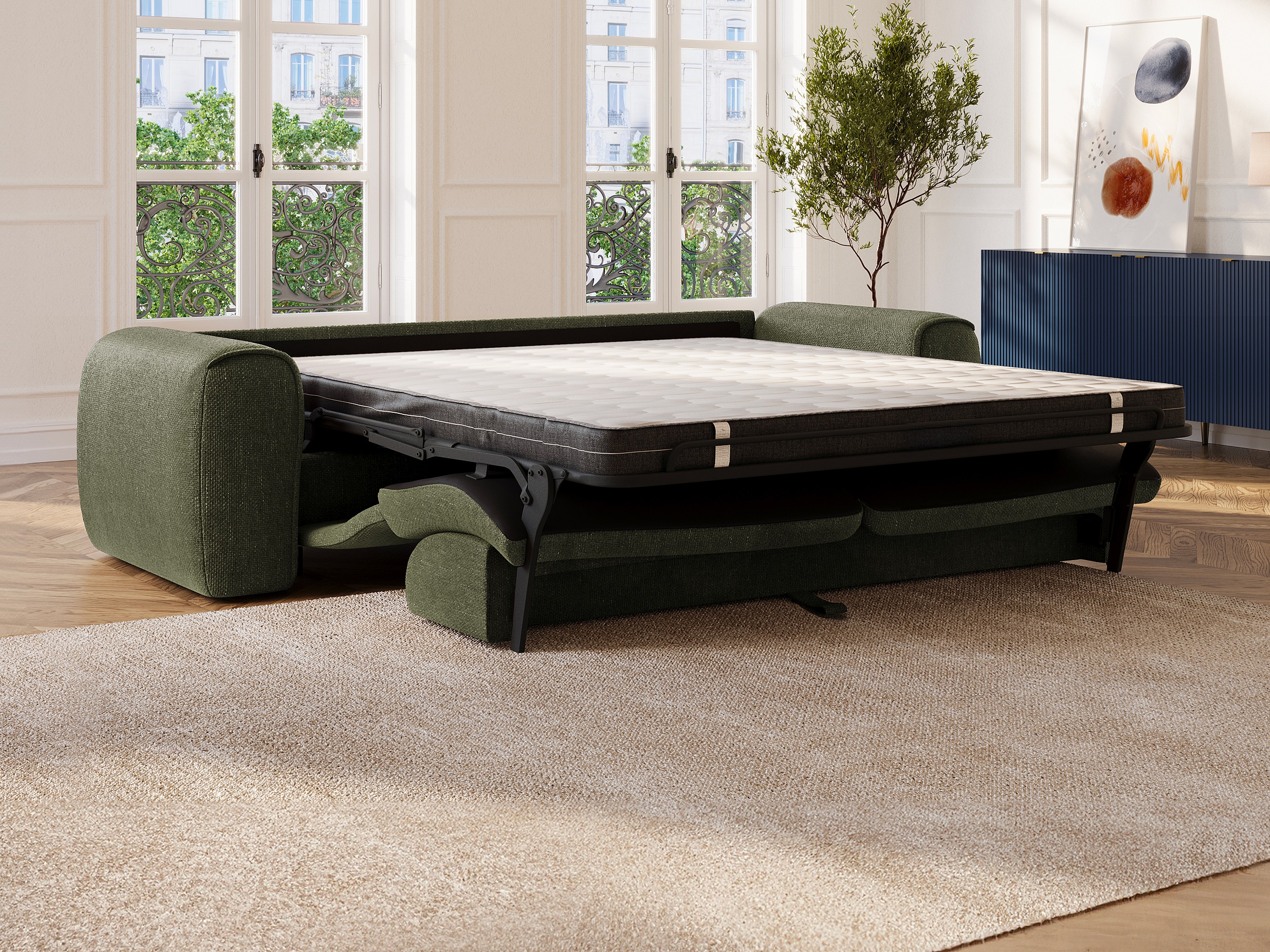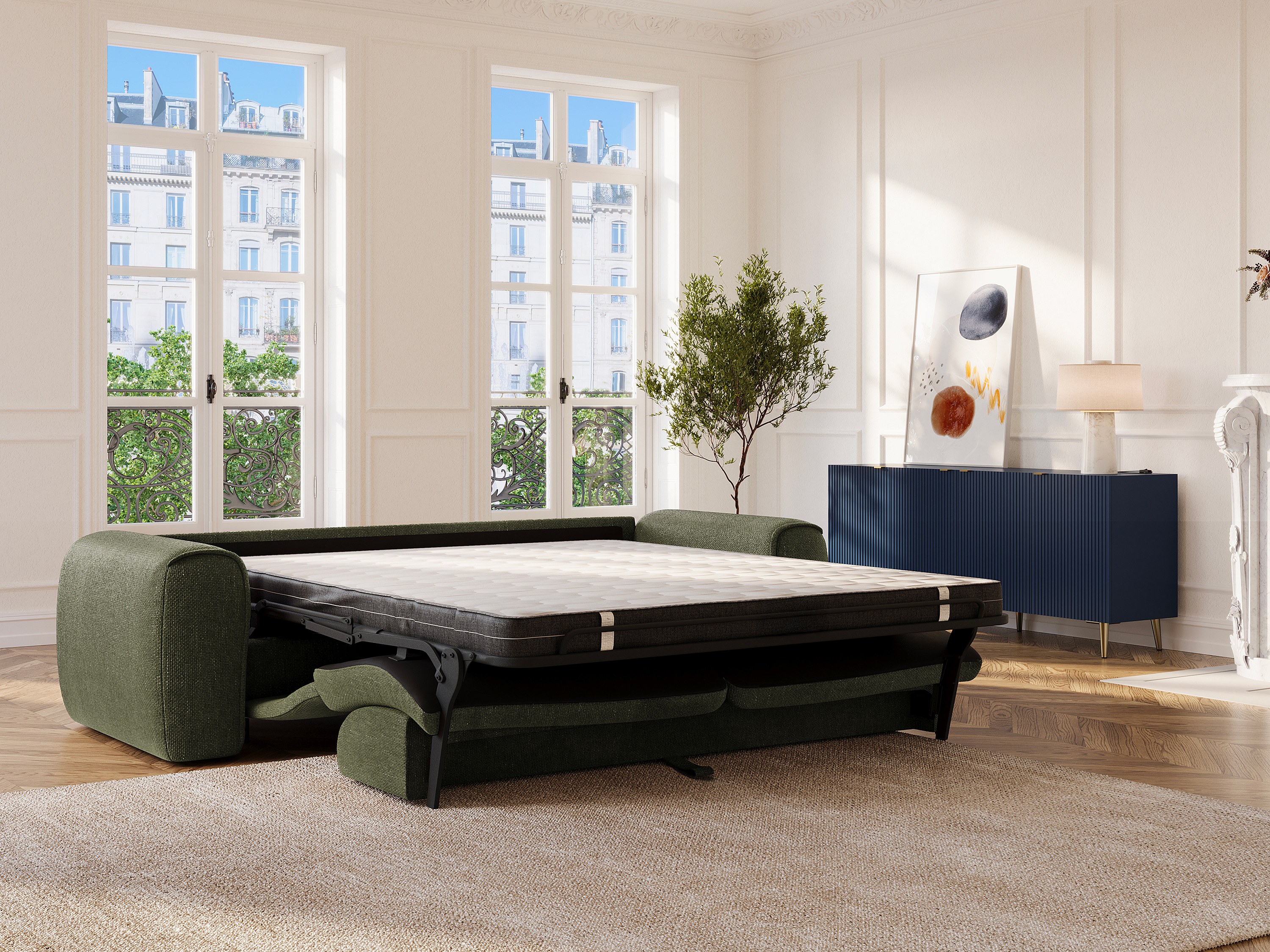 Snel om te bouwen slaapbank met 4 zitplaatsen in groene textuurstof POGNIA