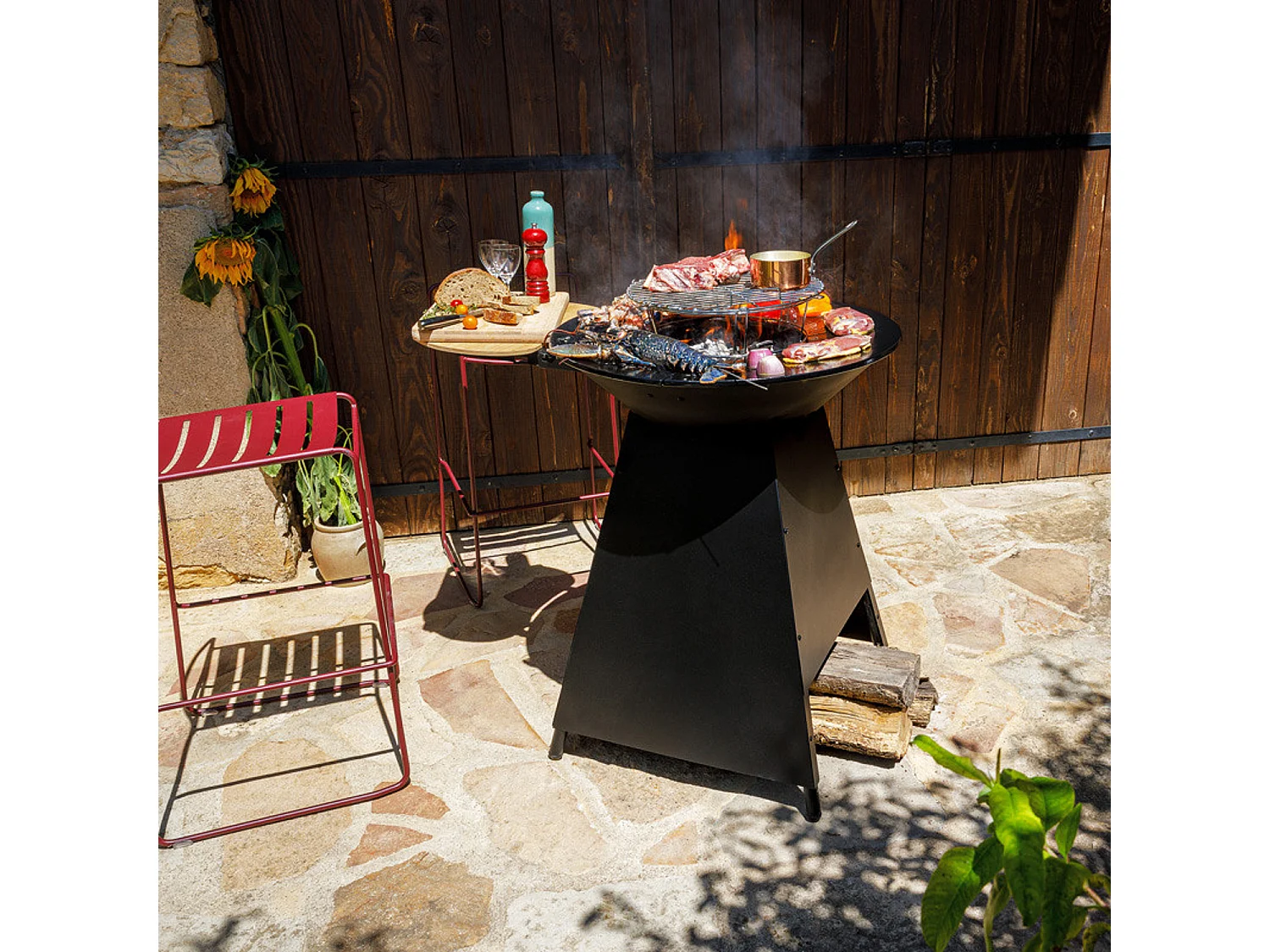 Houtskoolvuur met geëmailleerde gietijzeren kookplaat
