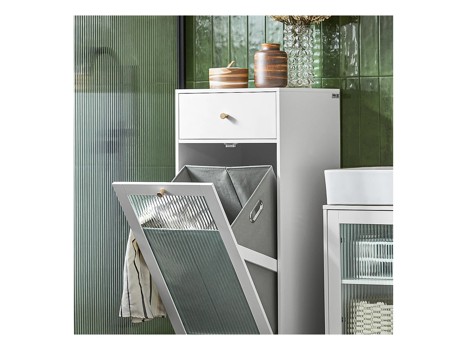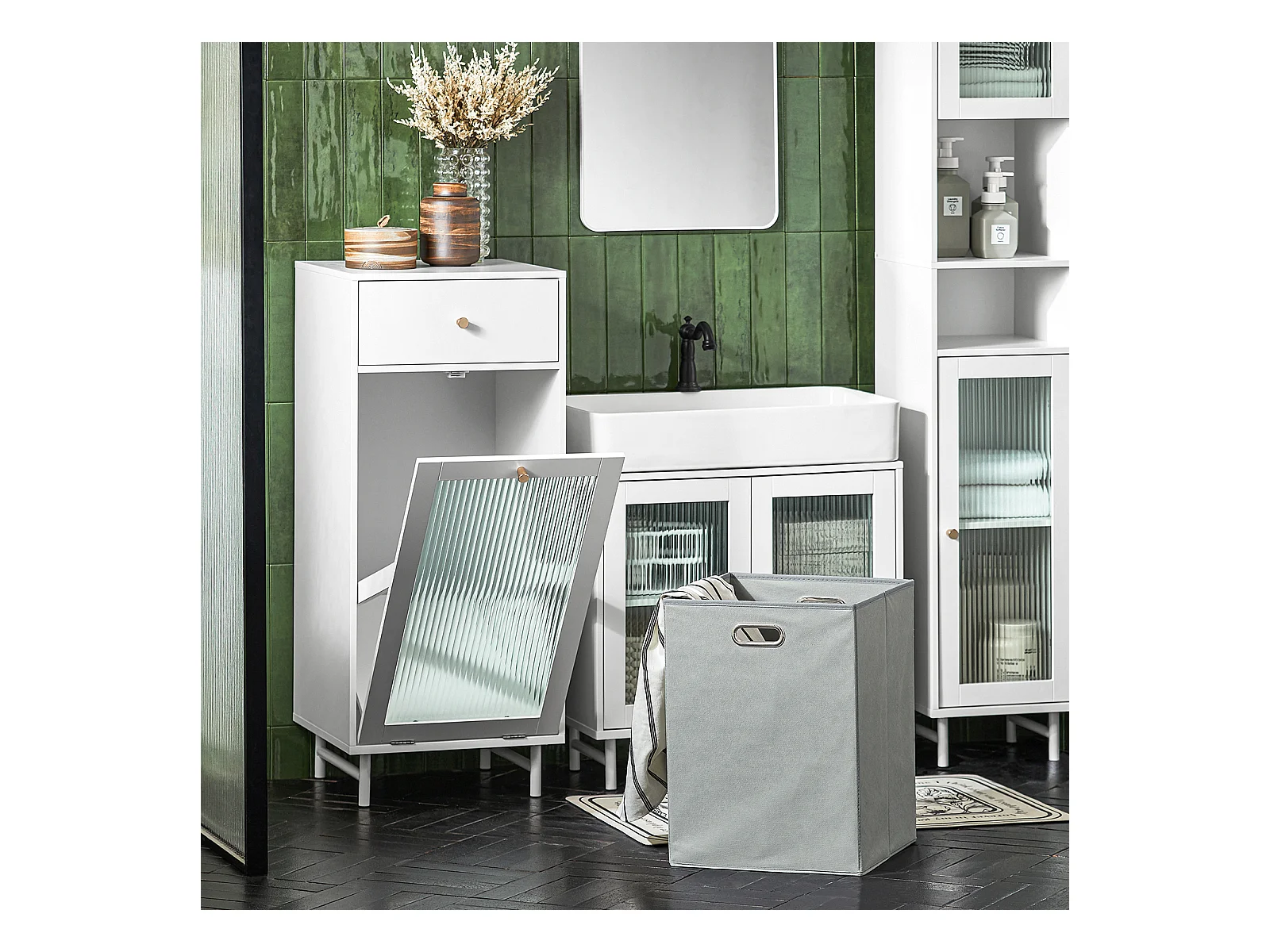 SoBuy BZR66-W Badkamerkast met Kantelbare Wasmand, Badkamermeubel met Waskast, Lage Kast, Staande Kast