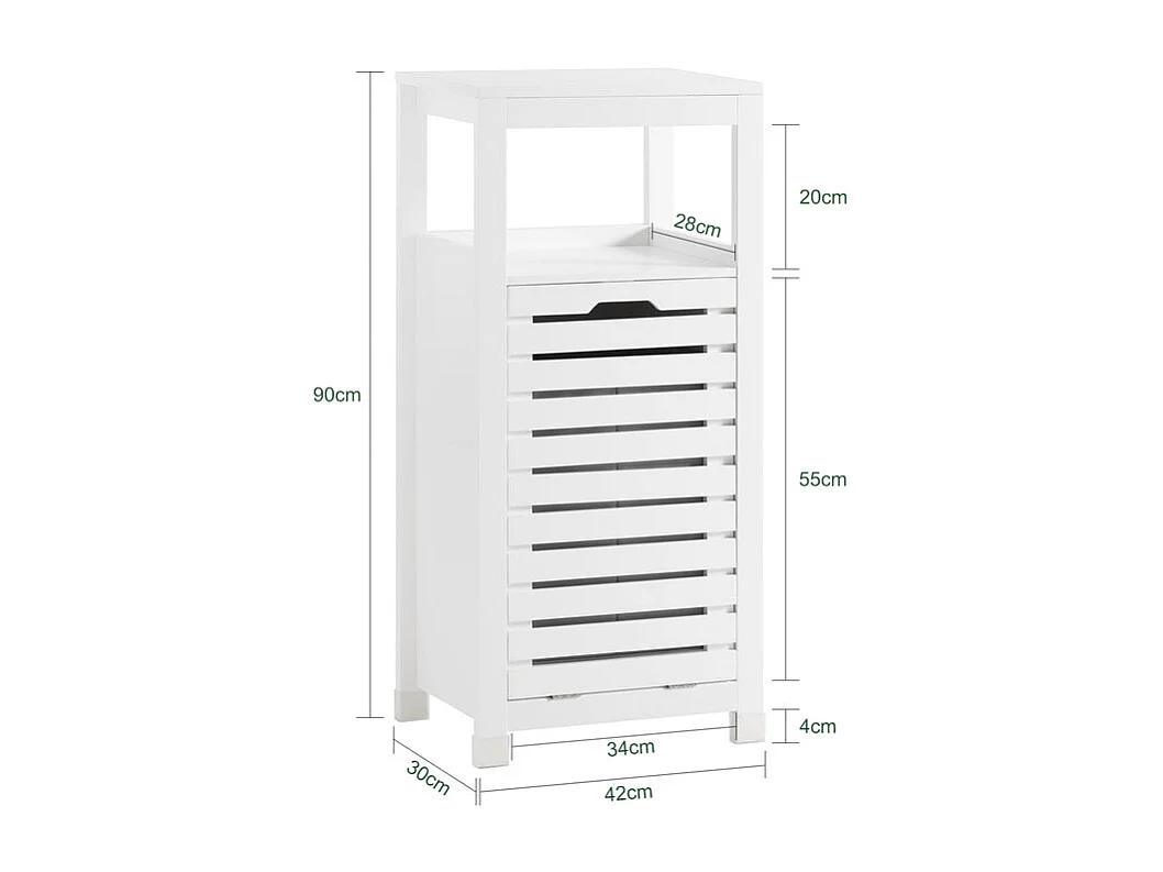 SoBuy BZR73-W Badkamermeubel, Badkamerkast, Smal Badkamerkastje, Lage Kast, Ladenkast, Halfhoge Opbergkast met 1 Lade en 1 Kantelbare Wasmand