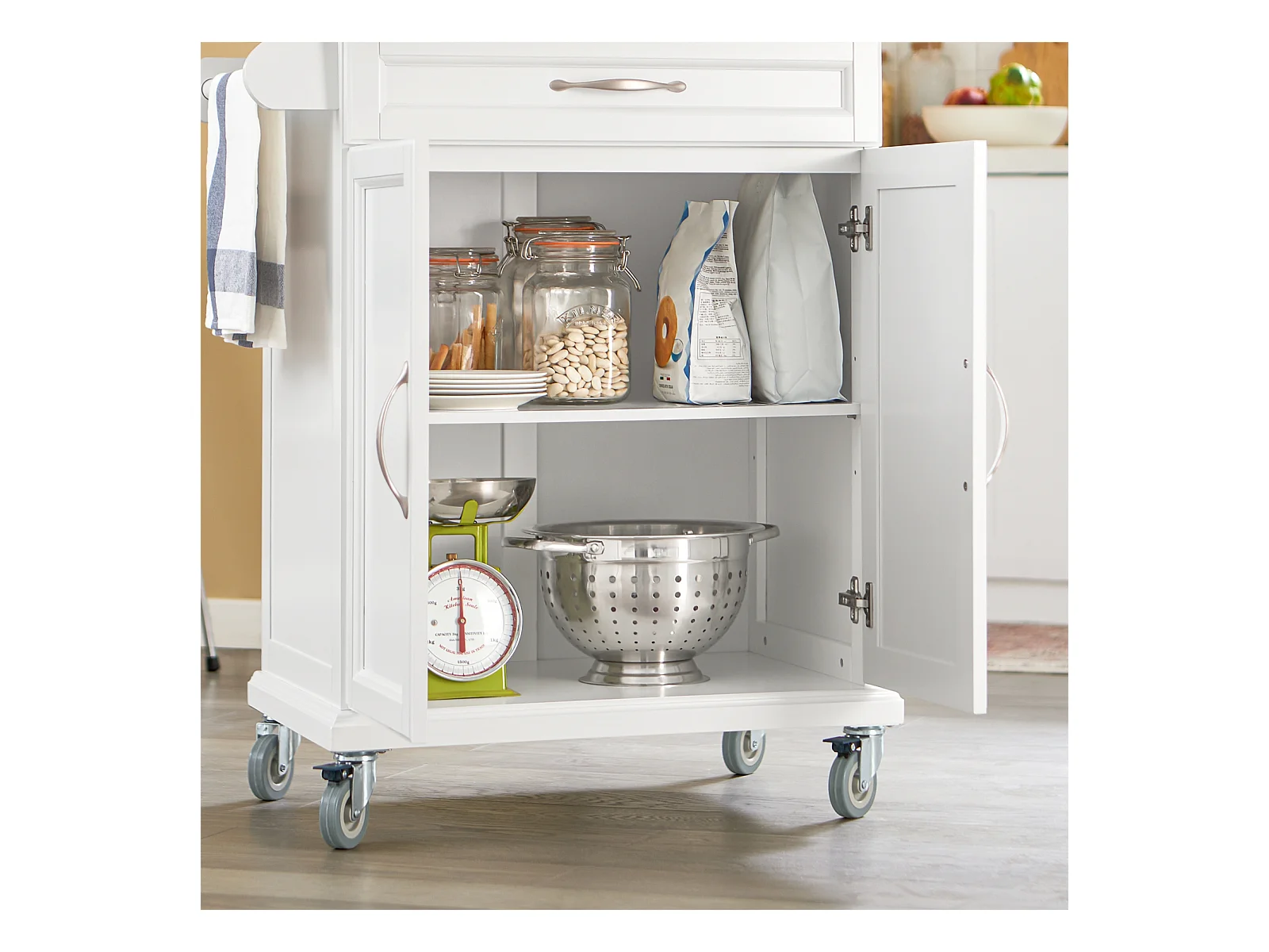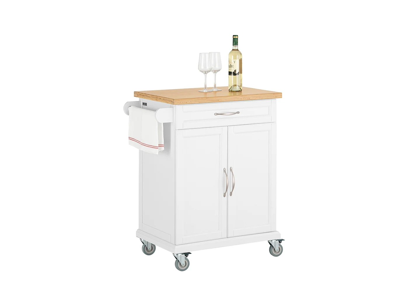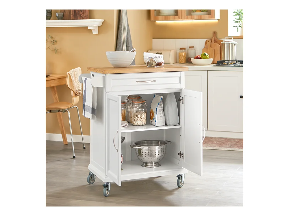 SoBuy FKW117-W Eetkamerkast Keuken Trolley Keukenkast Keukeneiland Buffet Dressoir Serveerwagen Opbergkast met 1 Laden, 2 Deuren