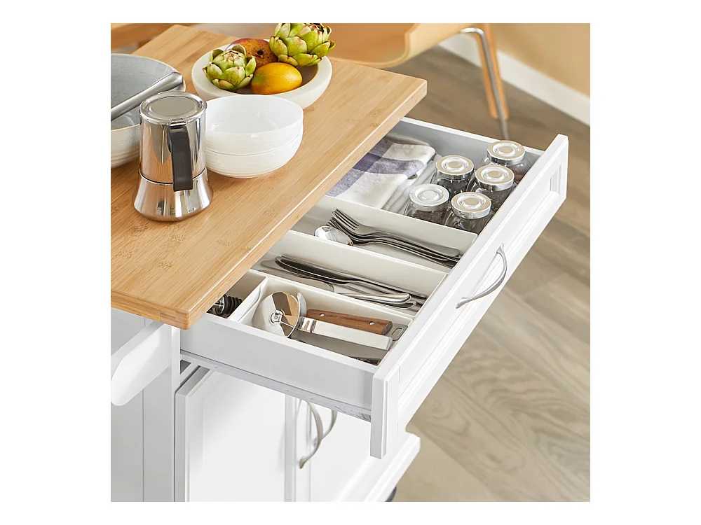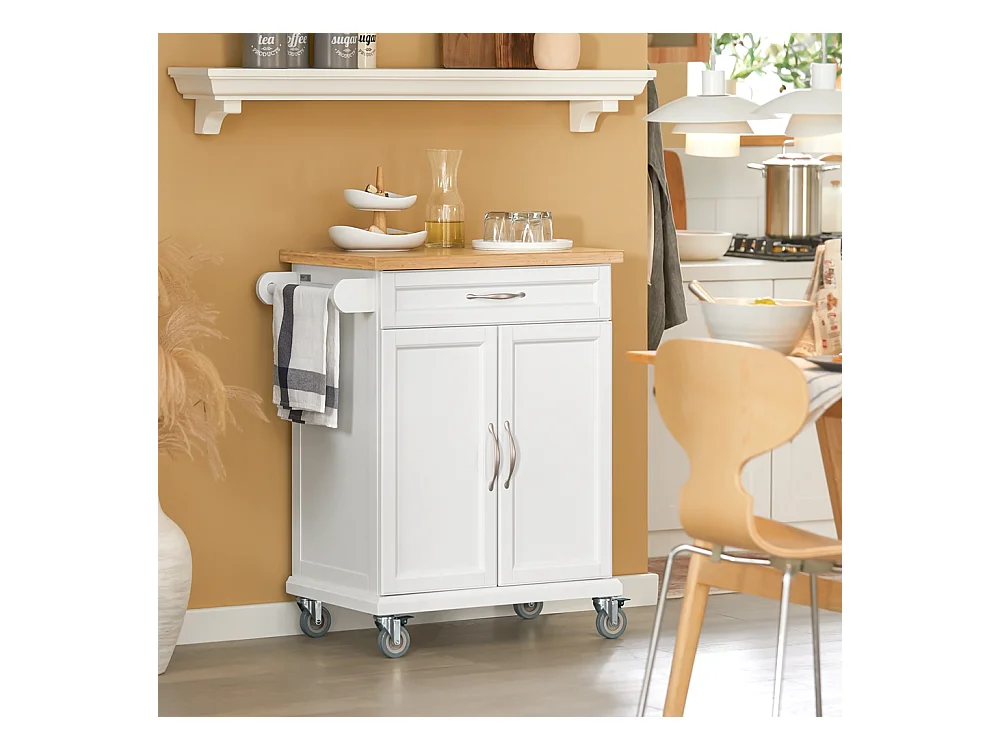 Desserte de Cuisine sur roulettes (2 Verrouillables), 82x50x92cm, Blanc