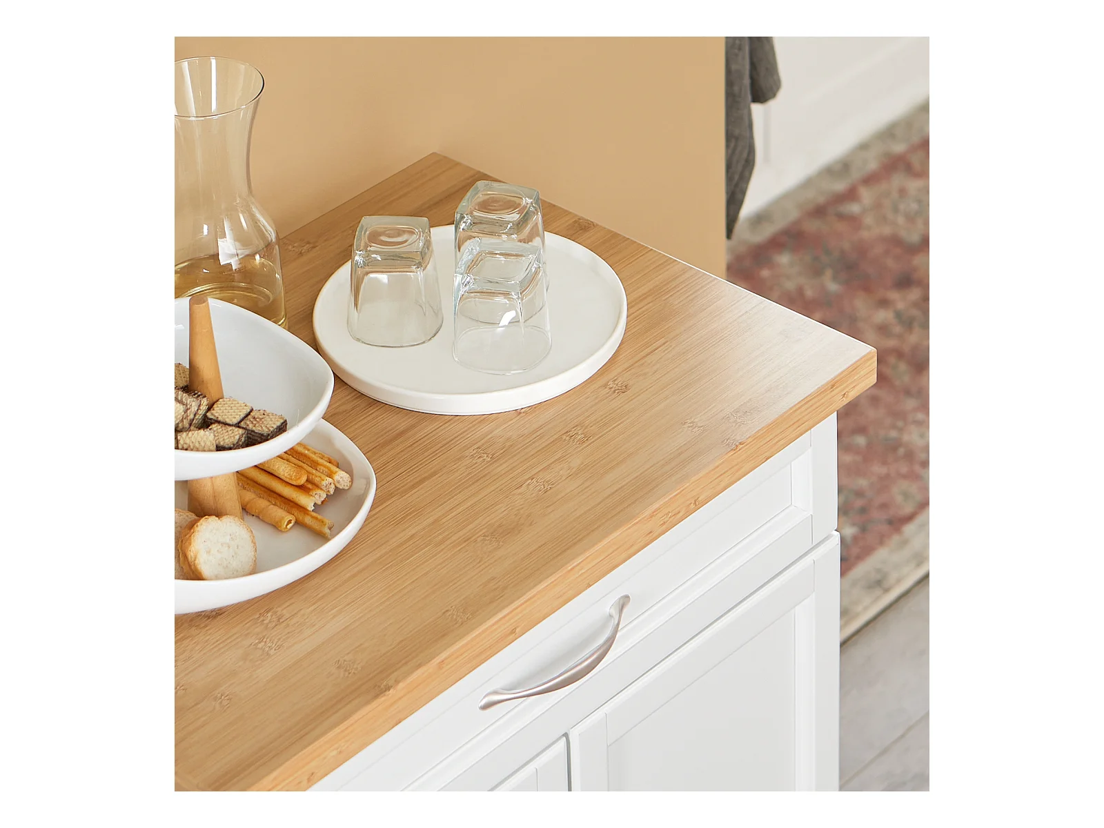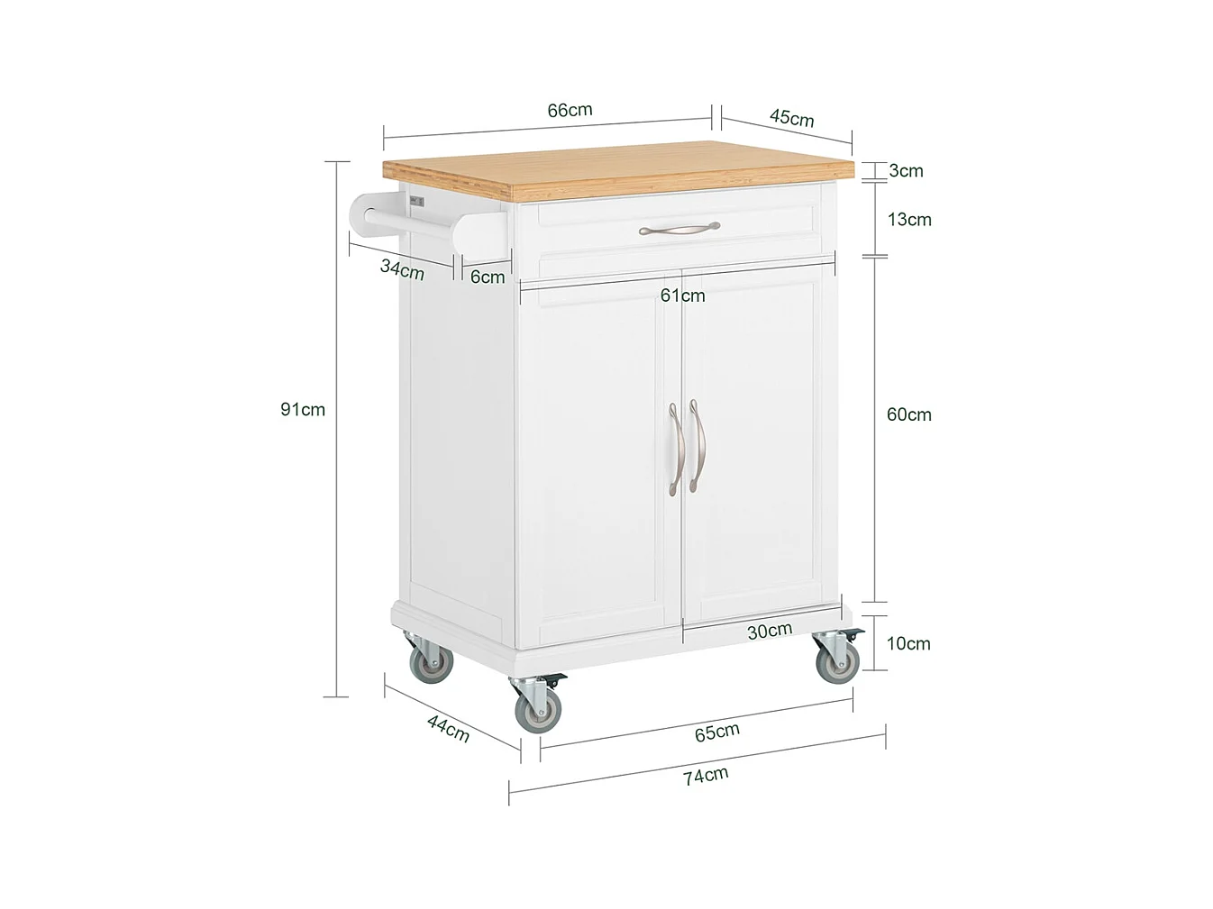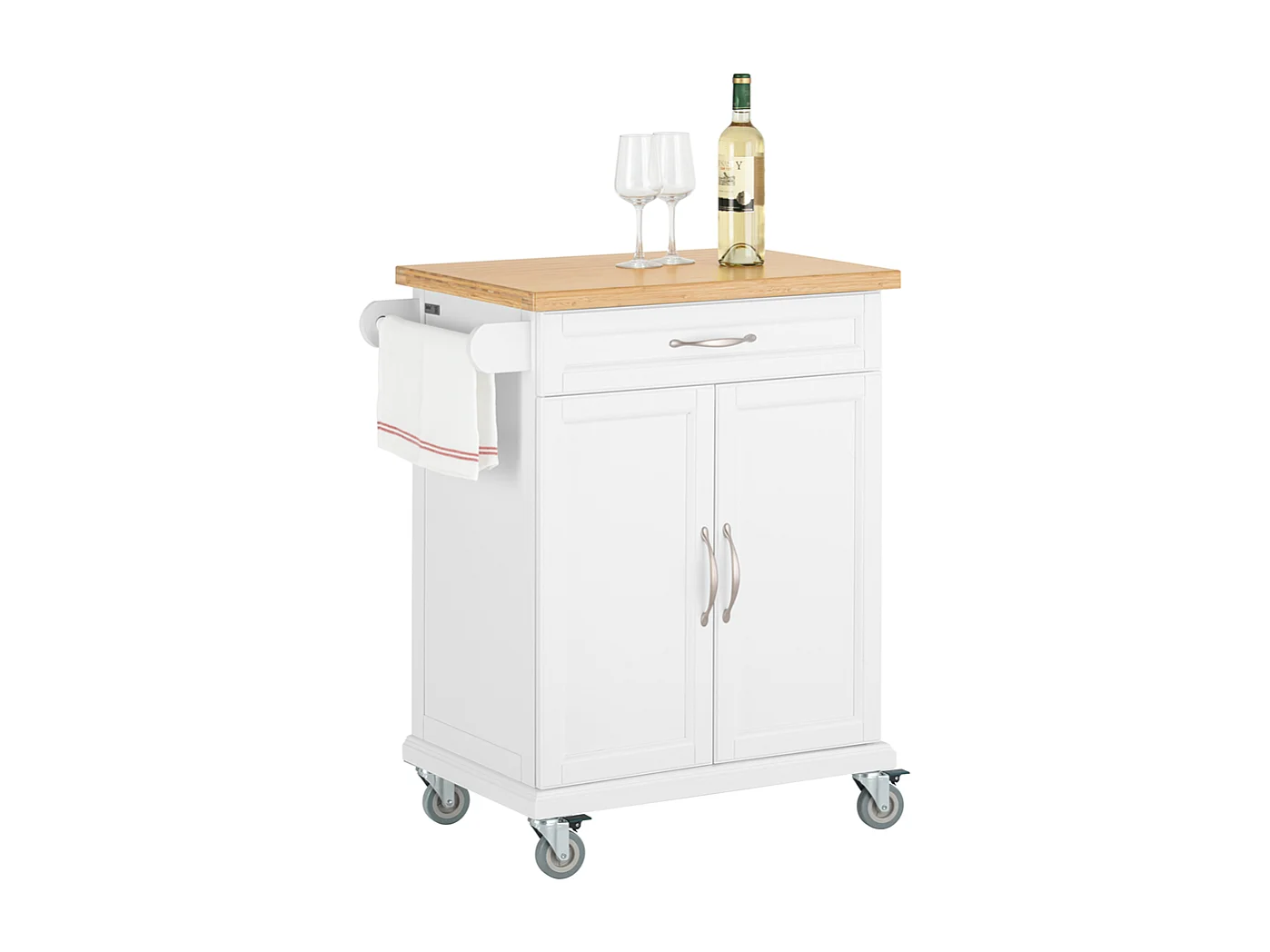 SoBuy FKW13-WN Keukentrolley Keukenwagen Serveerwagen met bamboe Tafelblad Keukenkast