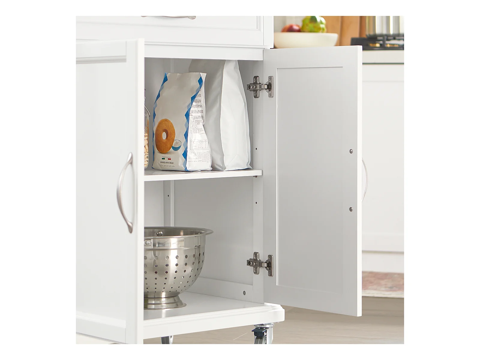 Keukentrolley met 3 opbergplanken, modern design, MDF, wit, 134x46x92 cm