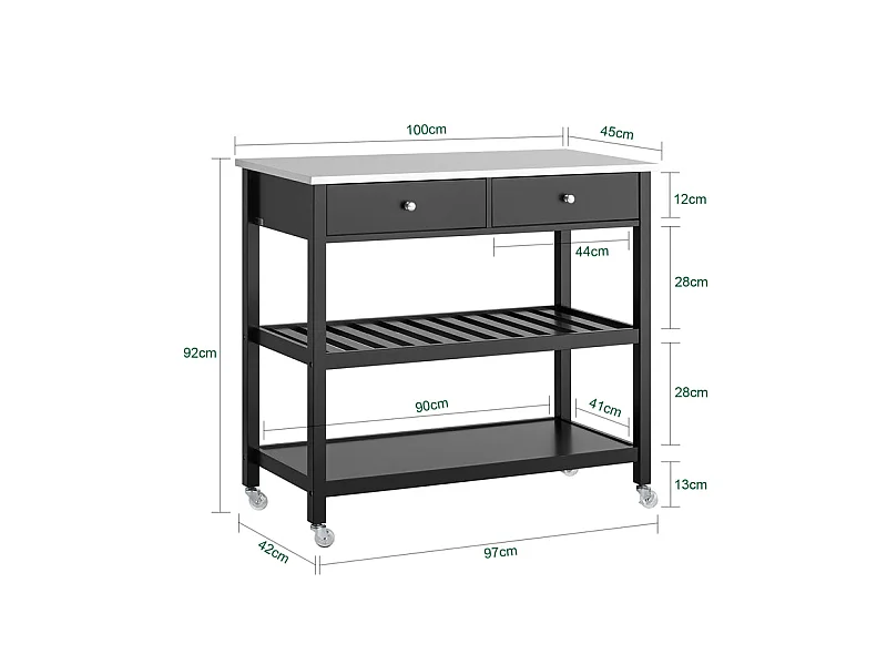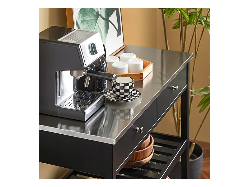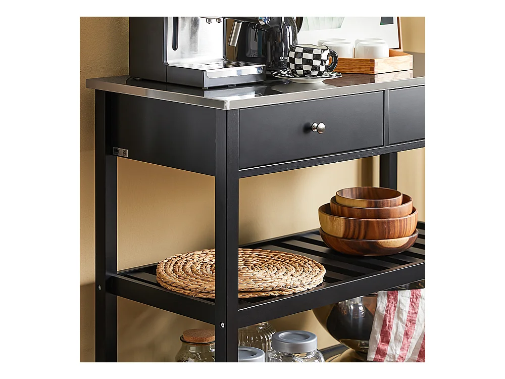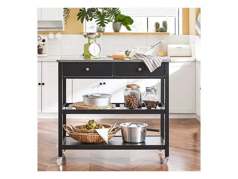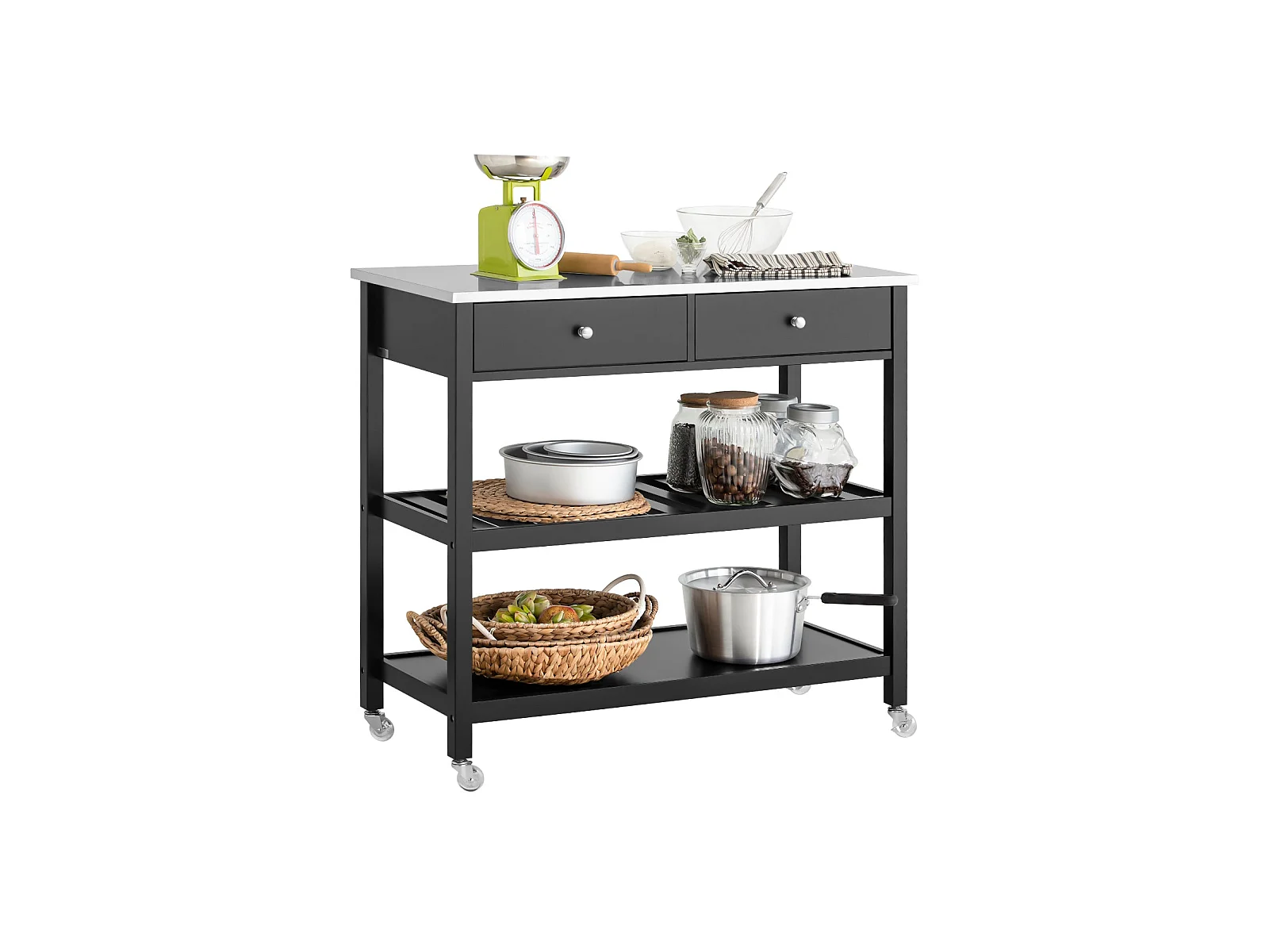 SoBuy FKW47-SCH Keukentrolley met roestvrij stalen plaat gangkast sideboard bijzettafel