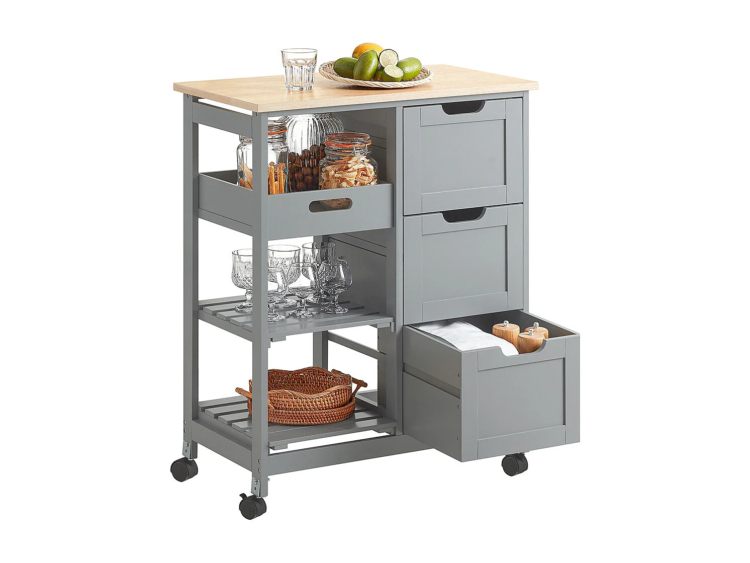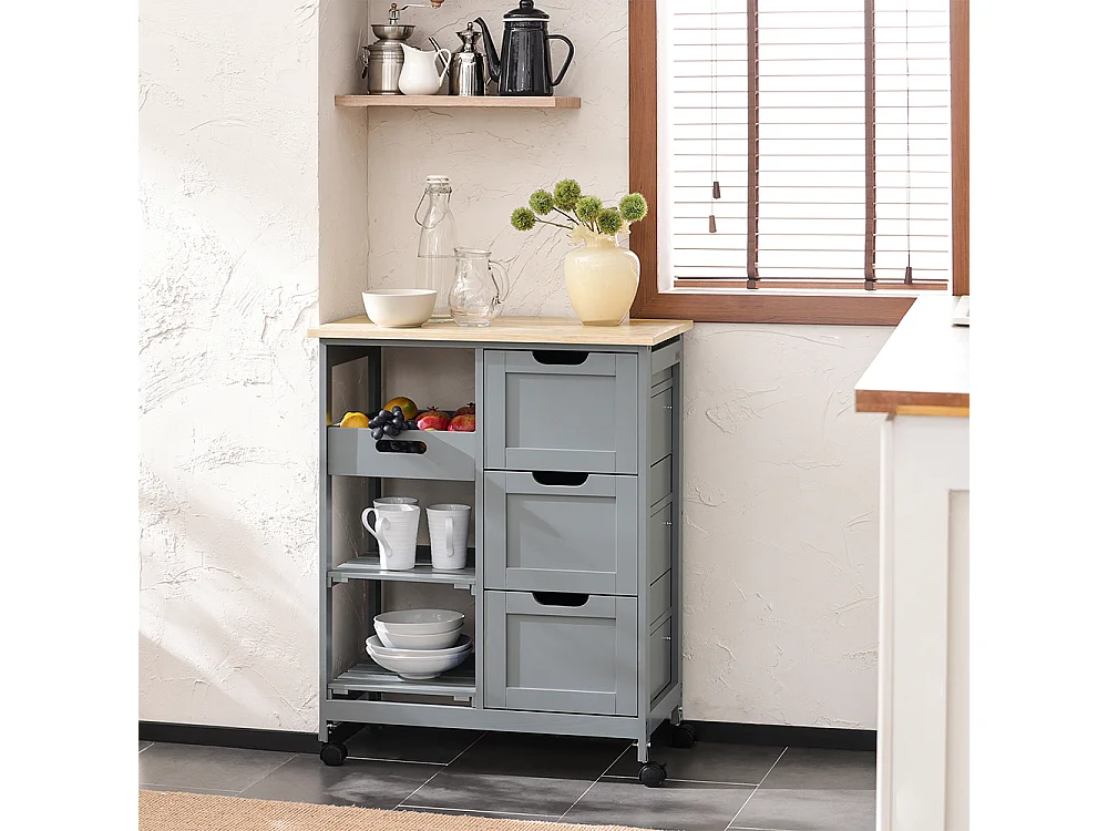 SoBuy FKW22-HG Keukentrolley - Keukenkast - Opbergruimte - Wielen - Kantoor - Servies - Multifunctioneel