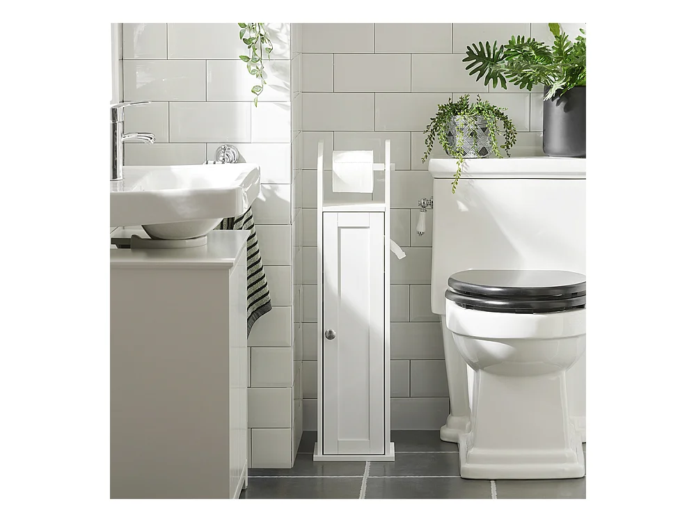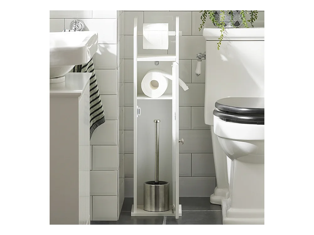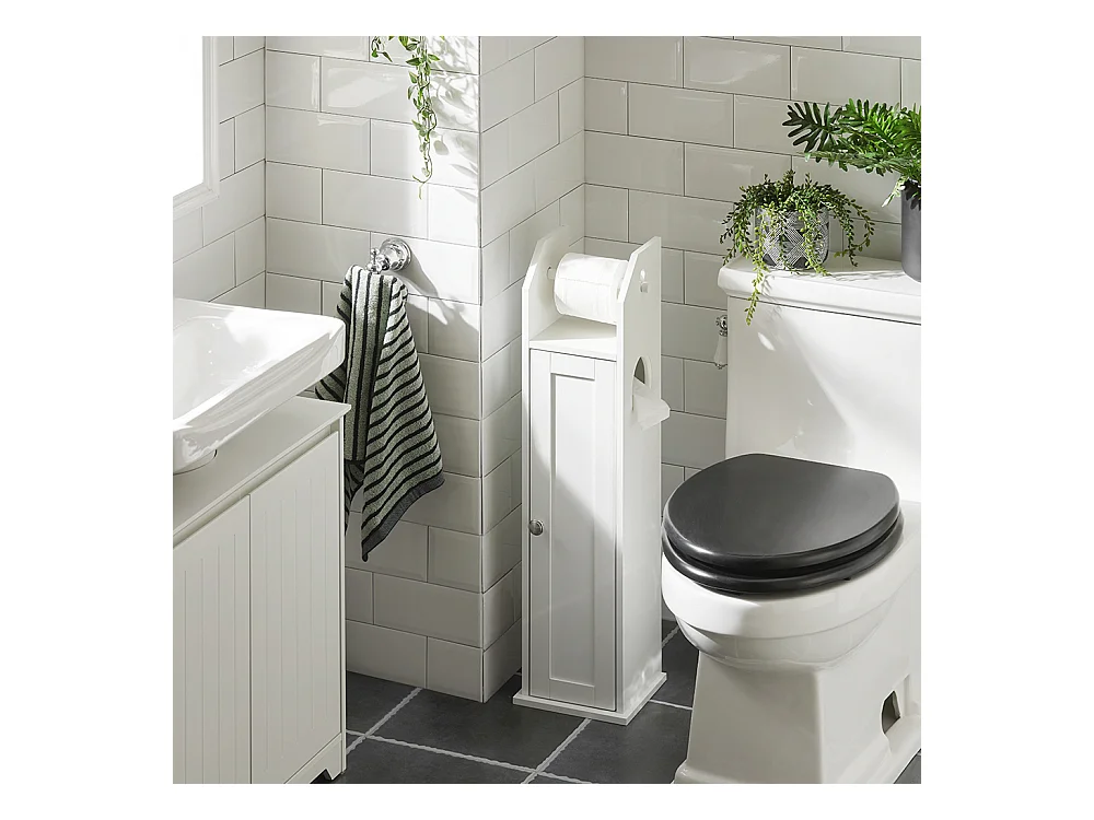 SoBuy FRG135-W Toiletrolhouder Vrijstaand Badkamermeubel Toiletborstel Wit
