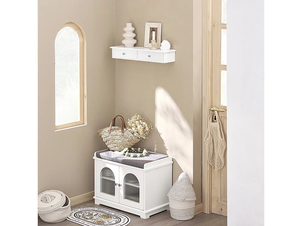 SoBuy FRG43-W Wandplank Wandrek Met 2 lades Wit