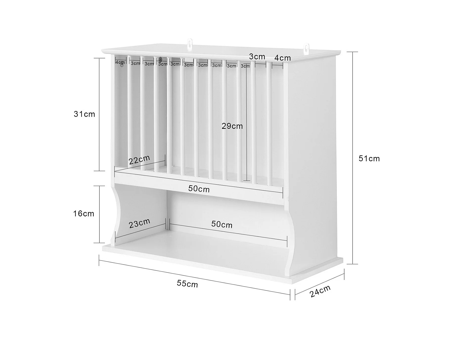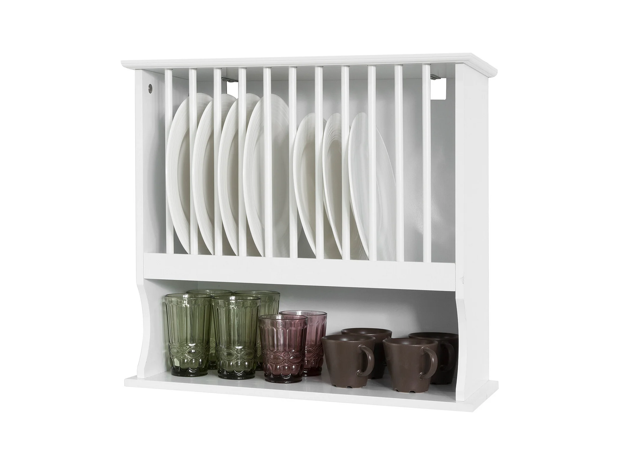 SoBuy KCR04-W Bordenrek voor in de Keuken - Wandplatenhouder Wandgemonteerde Platenopbergkast met 1 plank - Wit