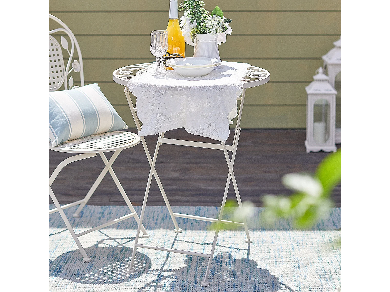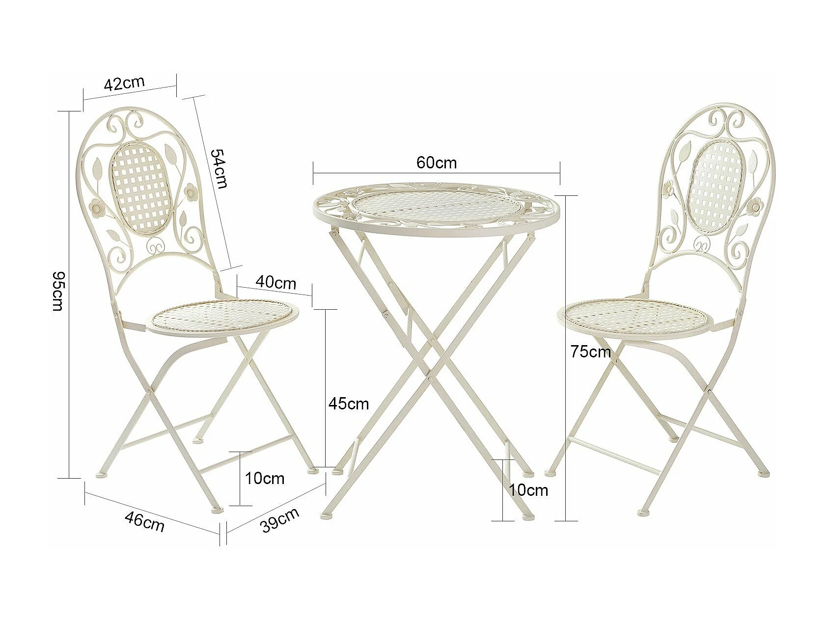 SoBuy OGT35-W 3-delige tuinmeubelset voor 2 personen - 2 tuinstoelen + 1 opklapbare bistrotafel tuinset ronde tafel