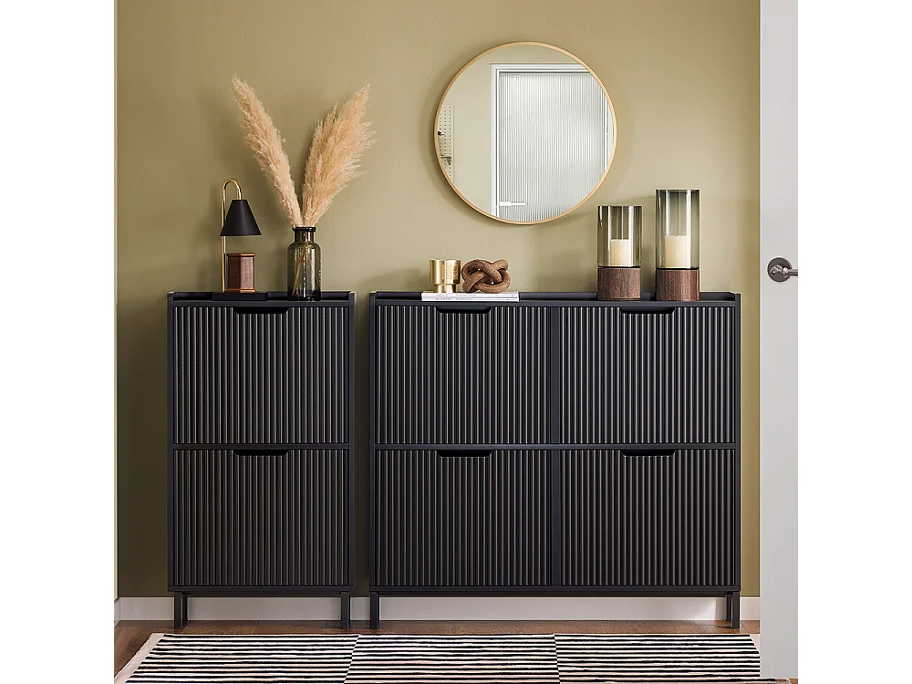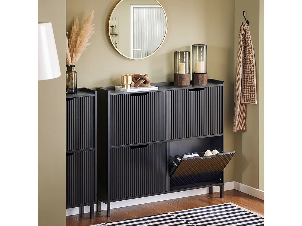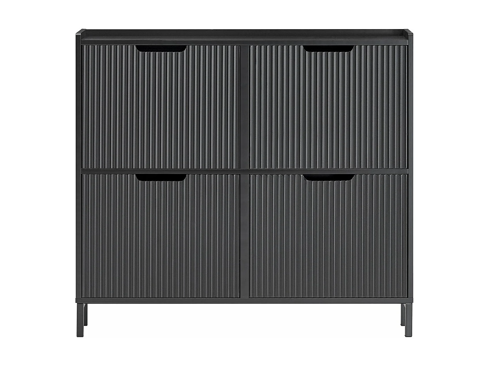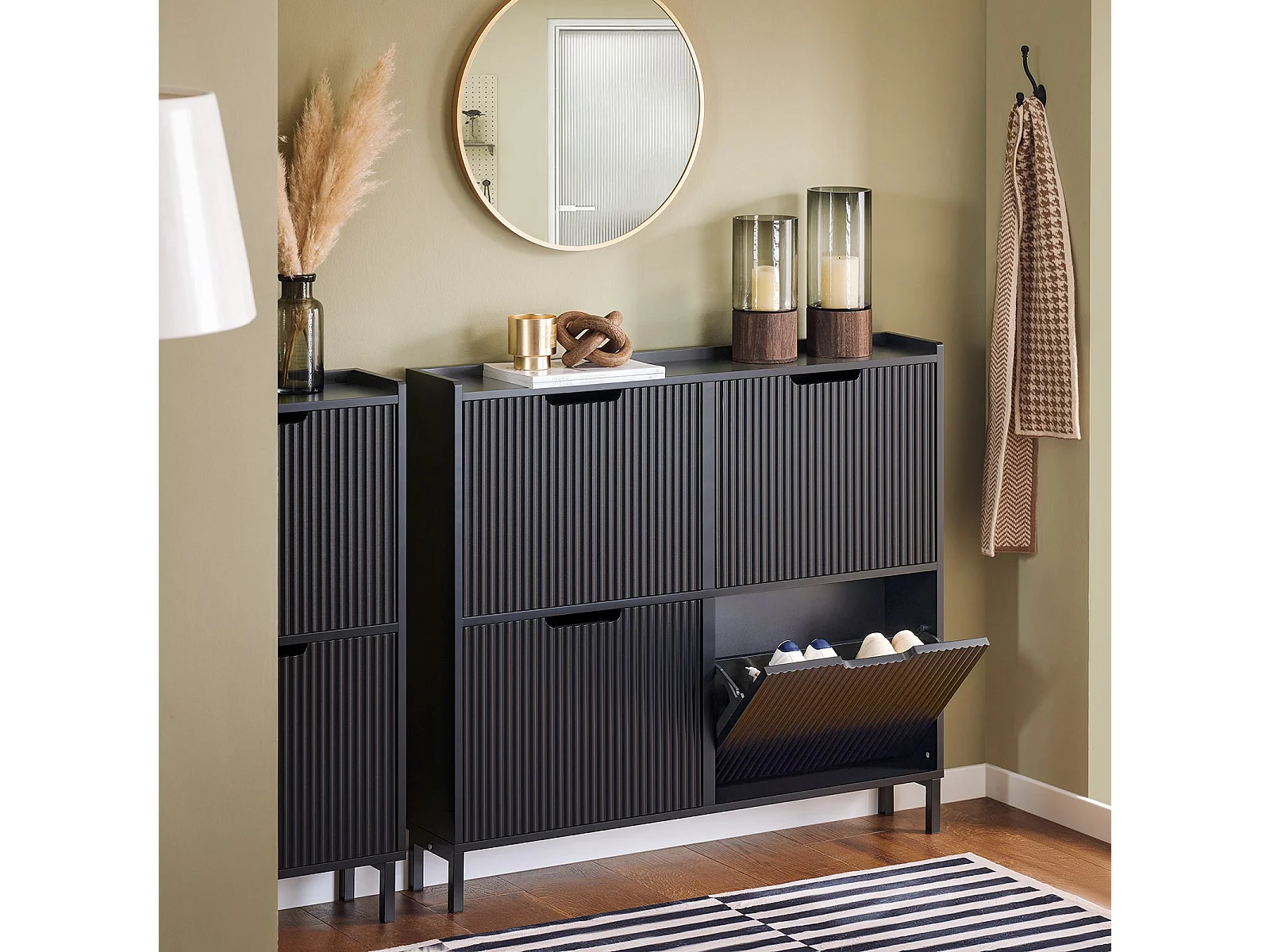 SoBuy Schoenenkast Schoenenkast Schoenenopberger 4 draaideuren, Entreekast Schoenenopbergdoos, 100 x 19 x 91cm, Zwart, FSR177-L-SCH