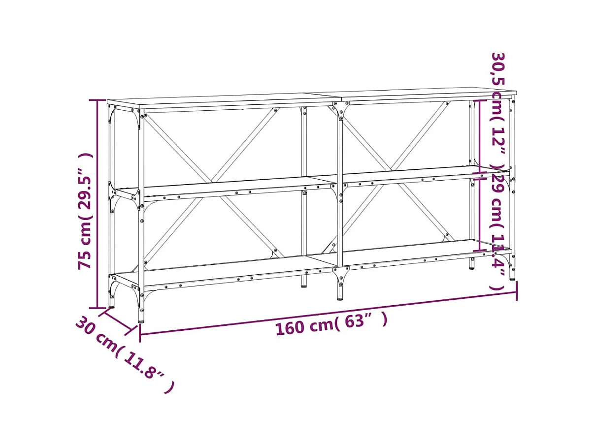 Consoletafel met plank gerookt eiken 75x30x75 cm