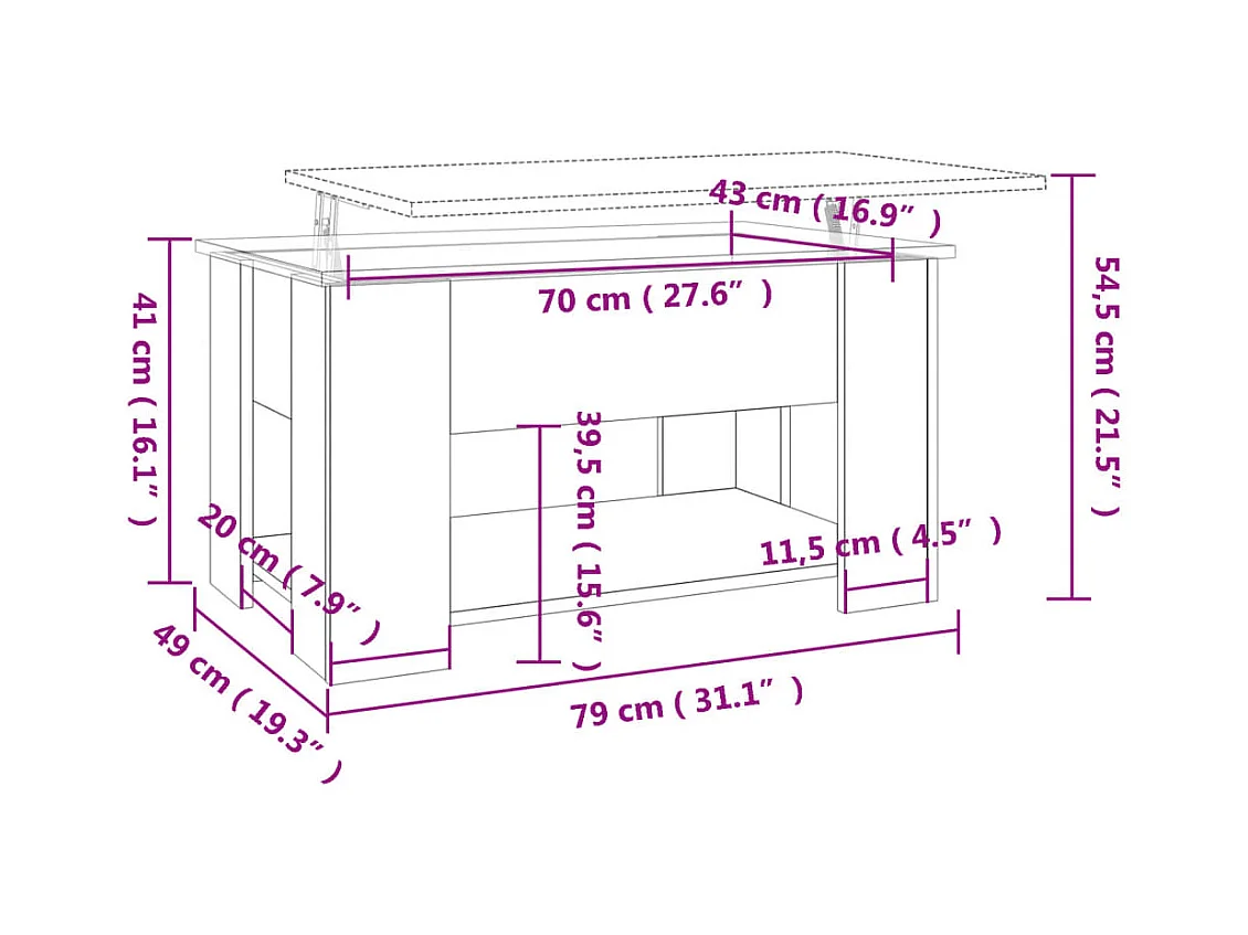 Sonoma eiken salontafel 79x49x41 cm bewerkt hout
