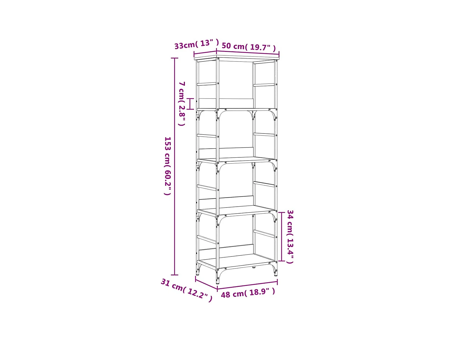 Sonoma grijze boekenkast 50x33x153 cm bewerkt hout