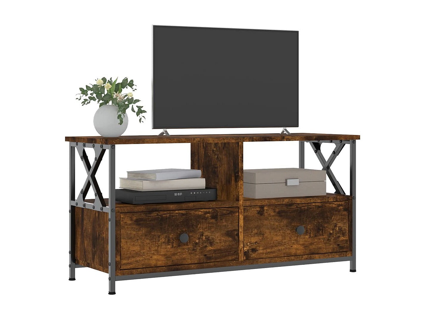 Sophie-Bernadette-Marie Tv-meubel 90x33x45 cm bewerkt hout en ijzer gerookt eikenkleur