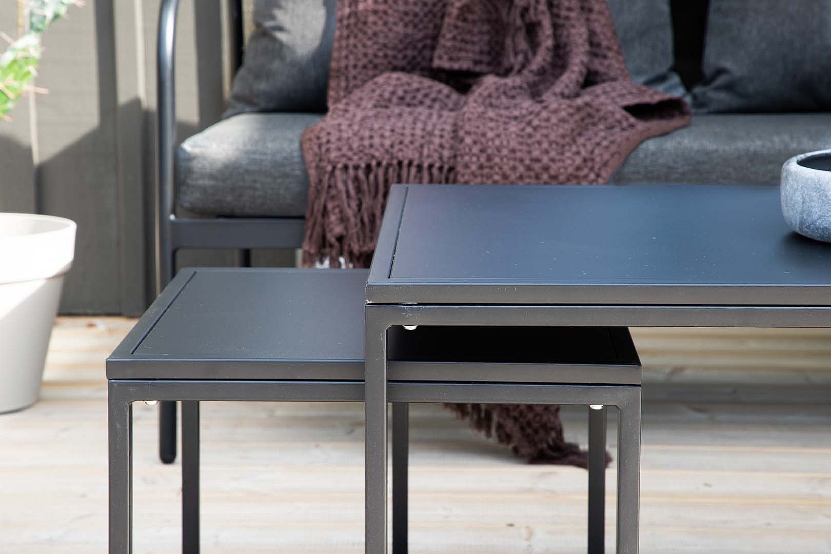 Loreto leunstoel tuin met tuinkussen met hocker zwart.