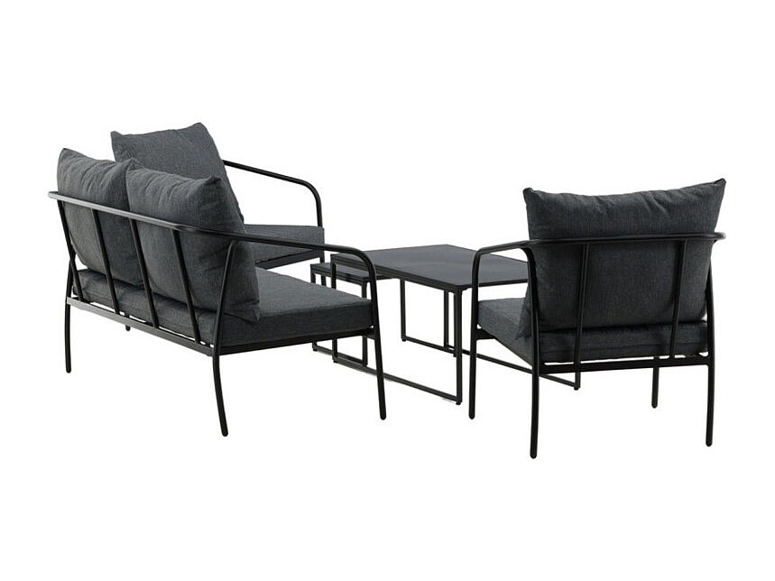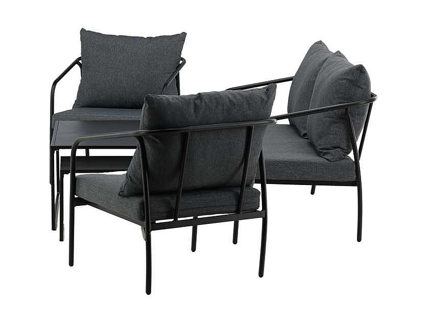 Tuinbank met 4-zitskussens, zwart geweven hars