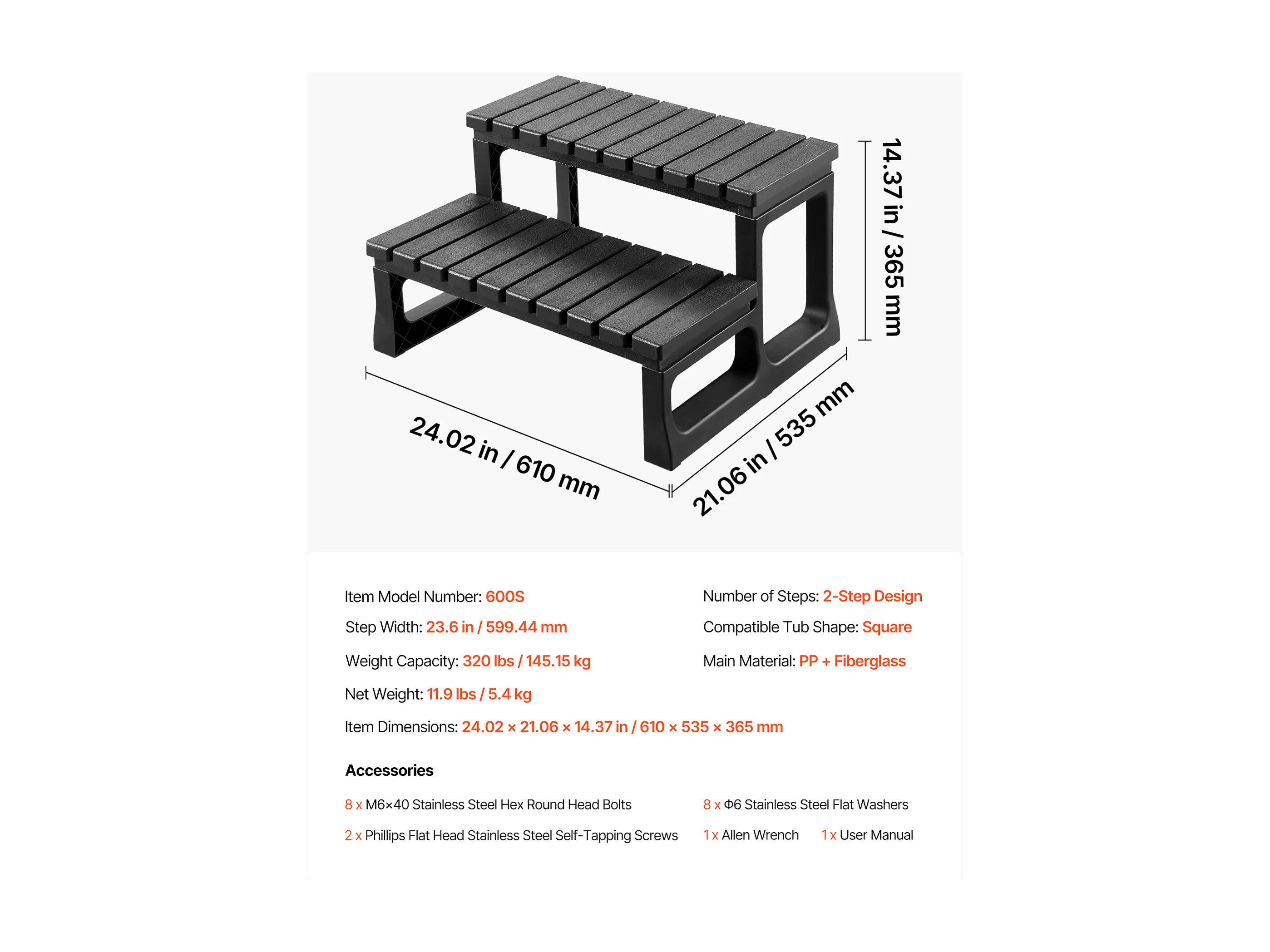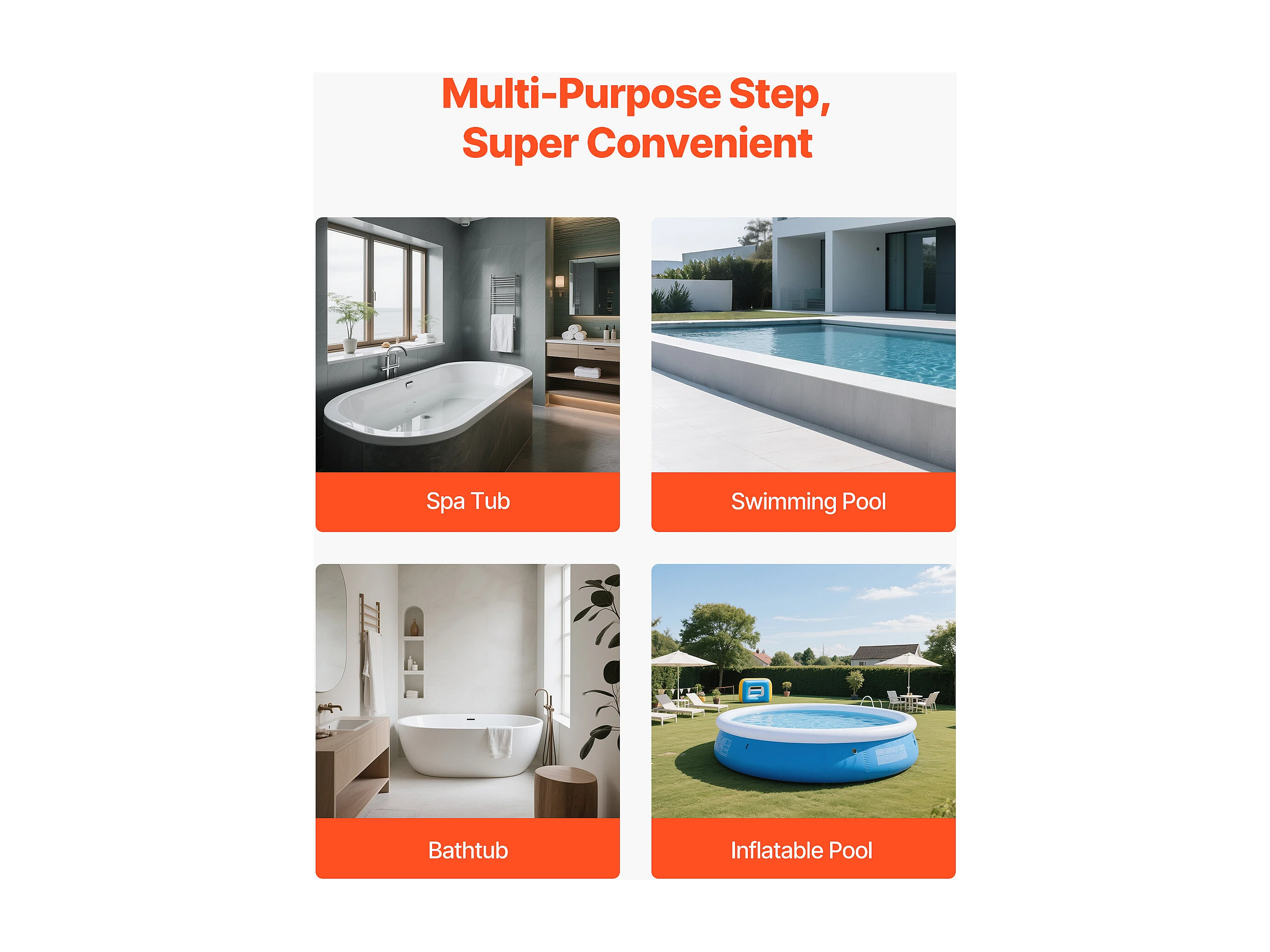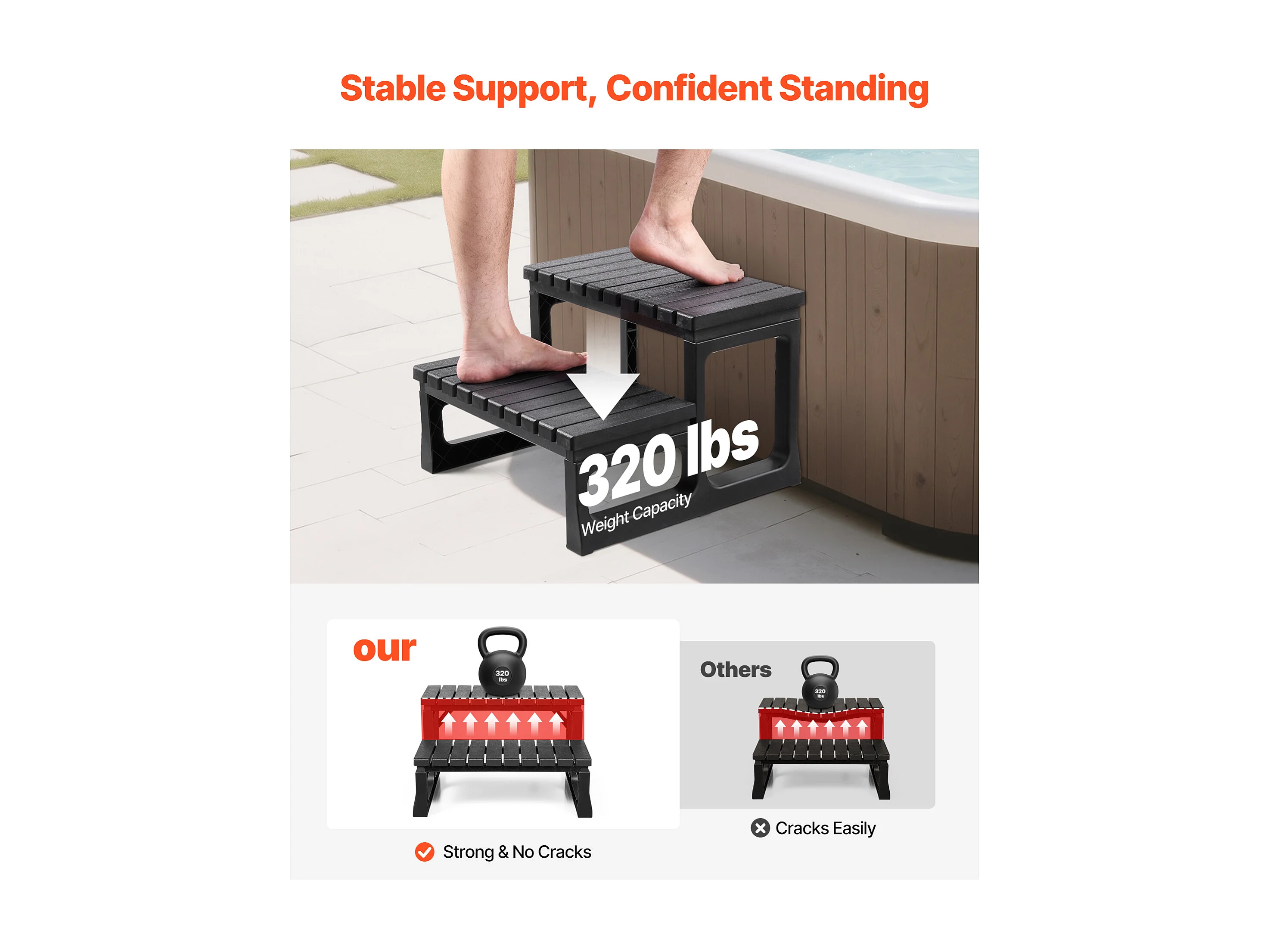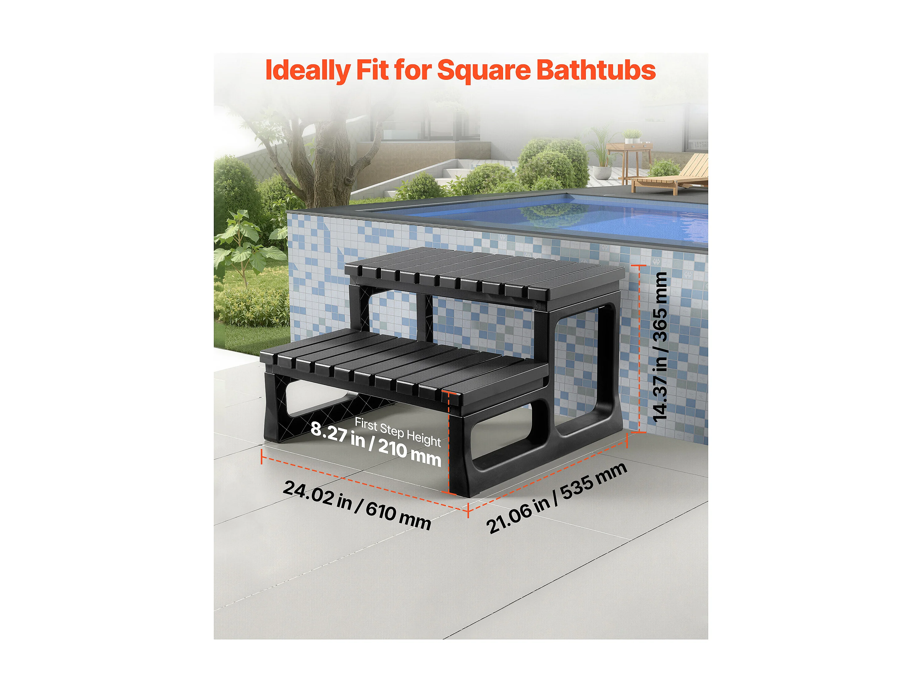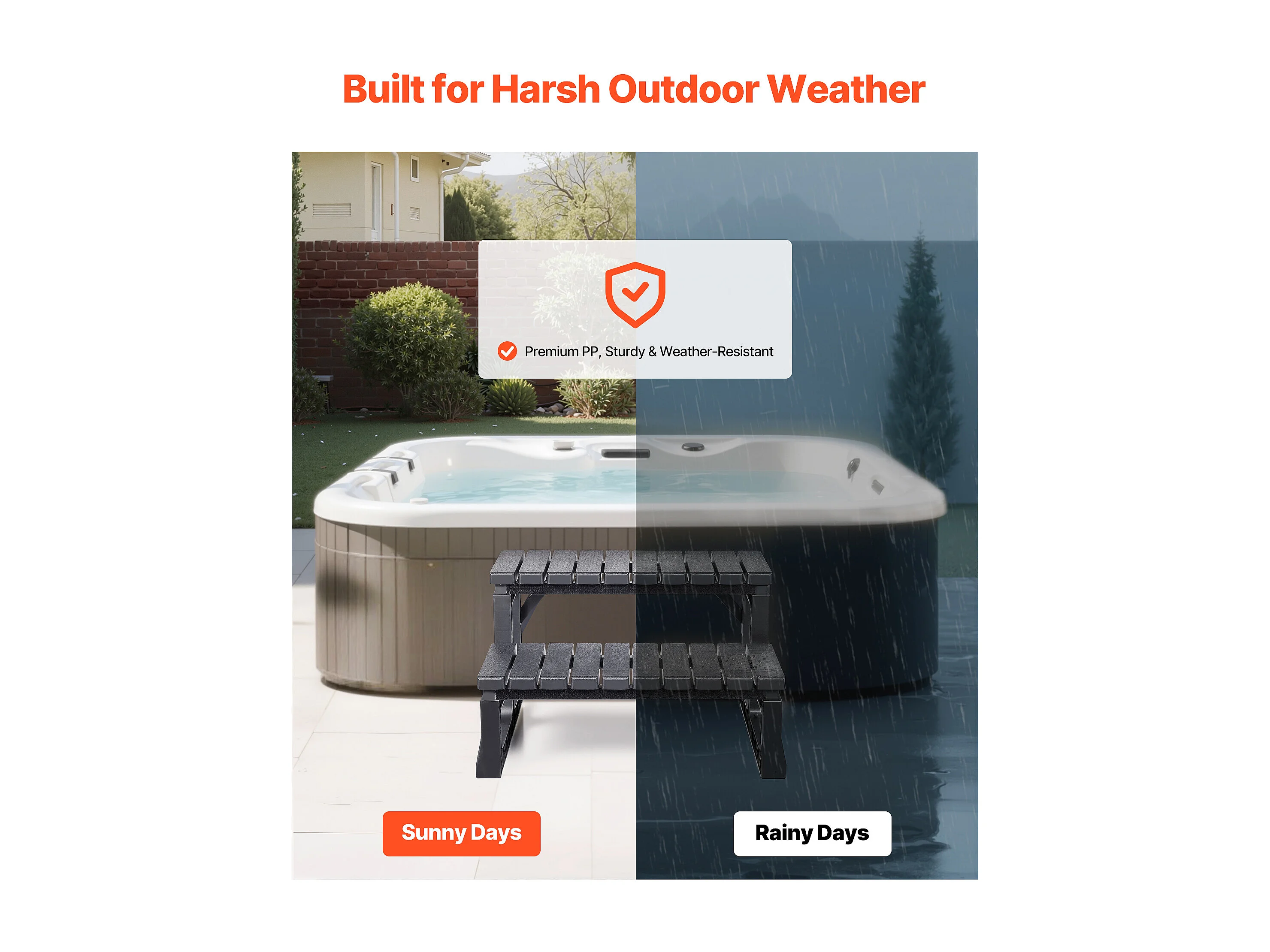 Spa Trap SucceBuy met 2 Treden, Robuuste Opblaasbare Poortrede uit PP 61cm Breed, Draagvermogen van 145,15 kg, Antislip Treden, Buiten Trap