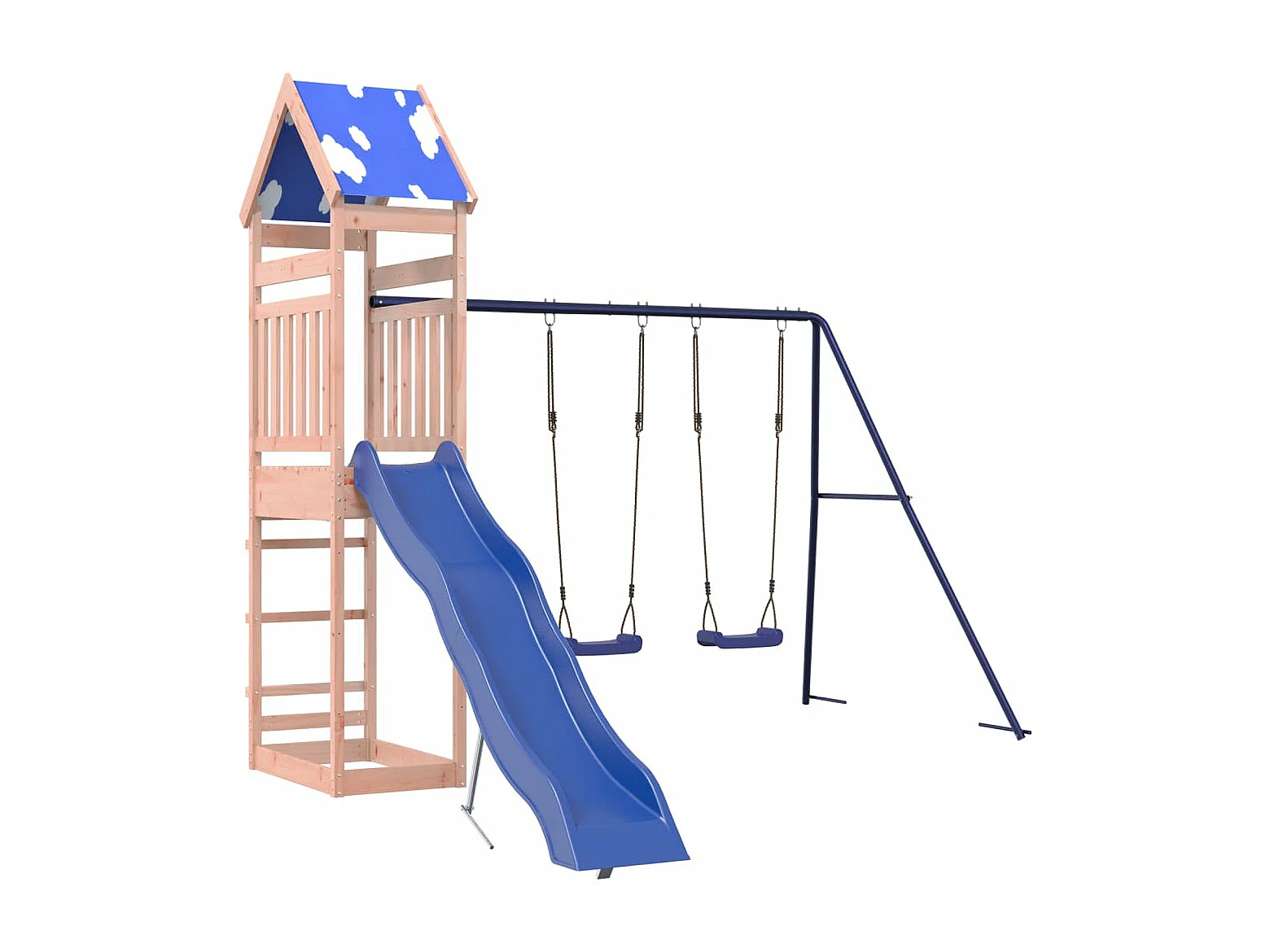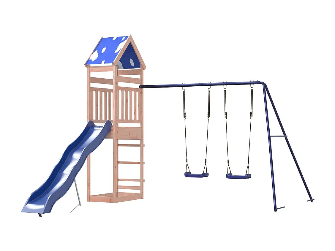 Timbela M570M-1 - Houten kinderhuis ZONDER vloer - Blauw dak - 1m2 / 114x111xH121cm
