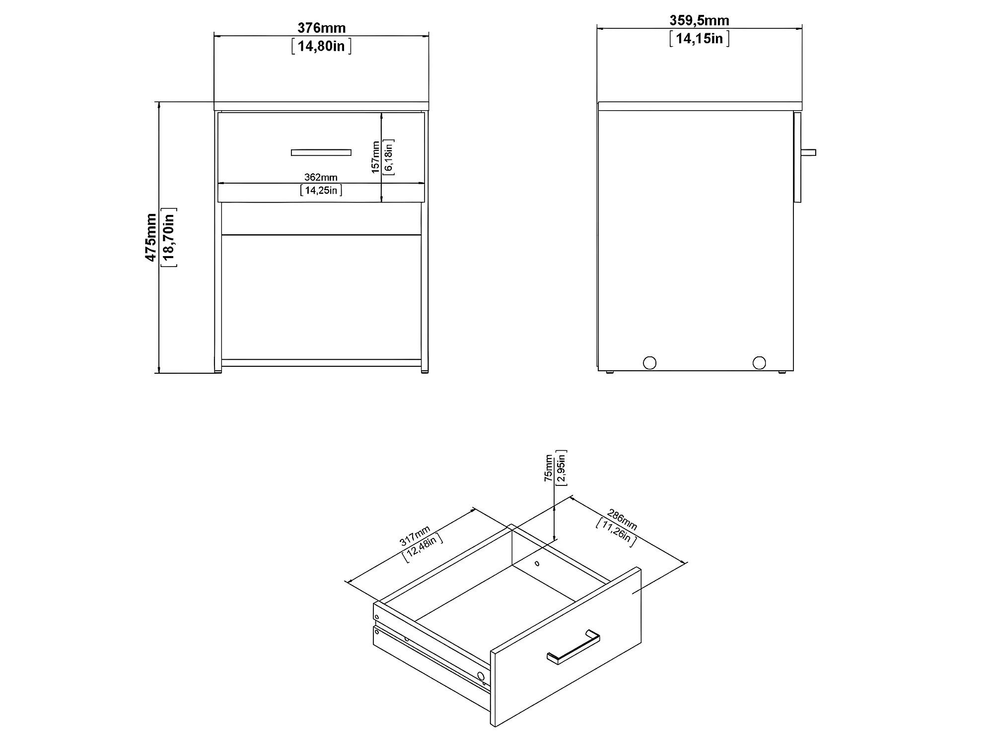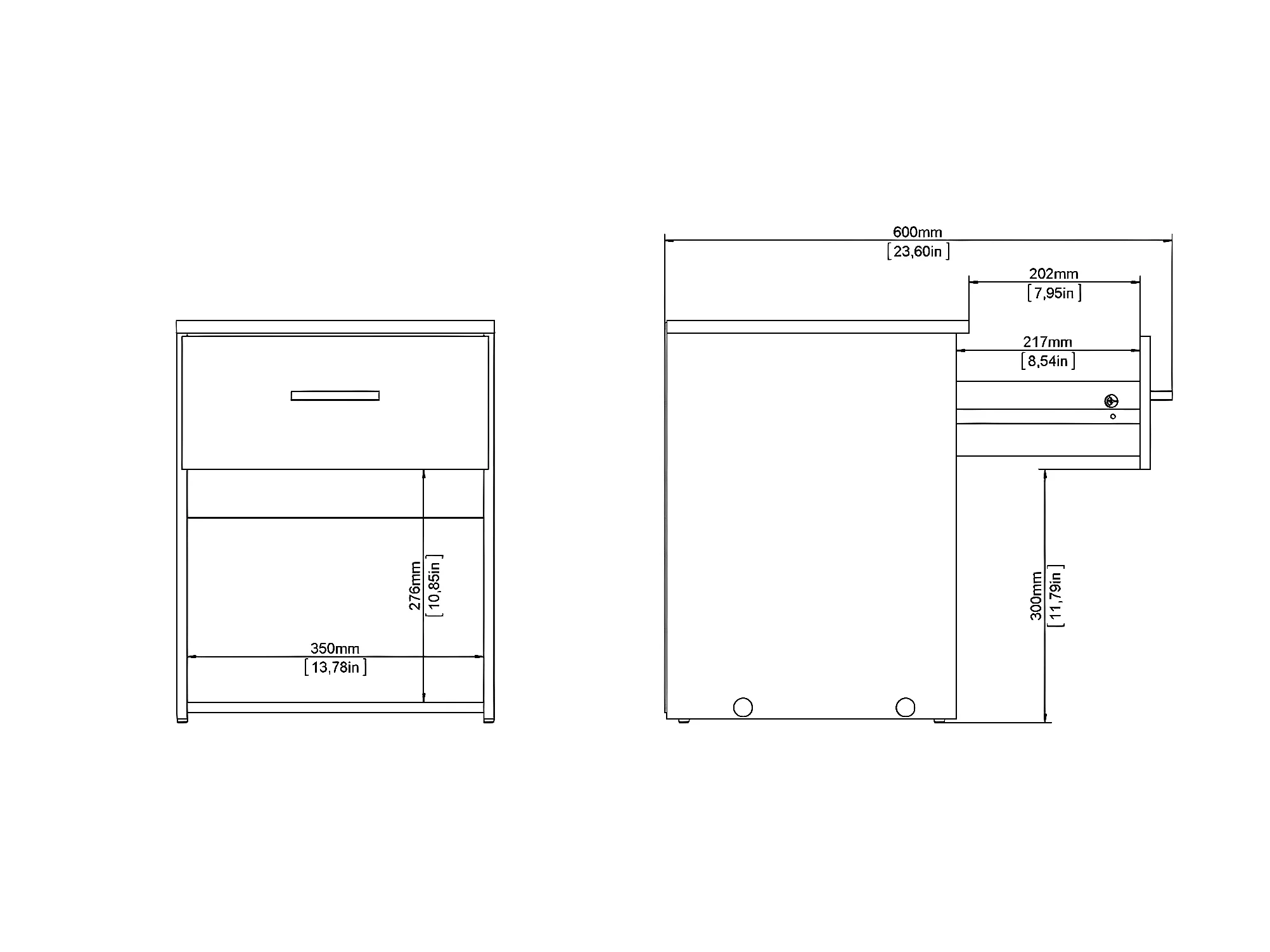 Nachtkastje Mia wit - 40cm breed, 48,5cm hoog en 34cm diep.