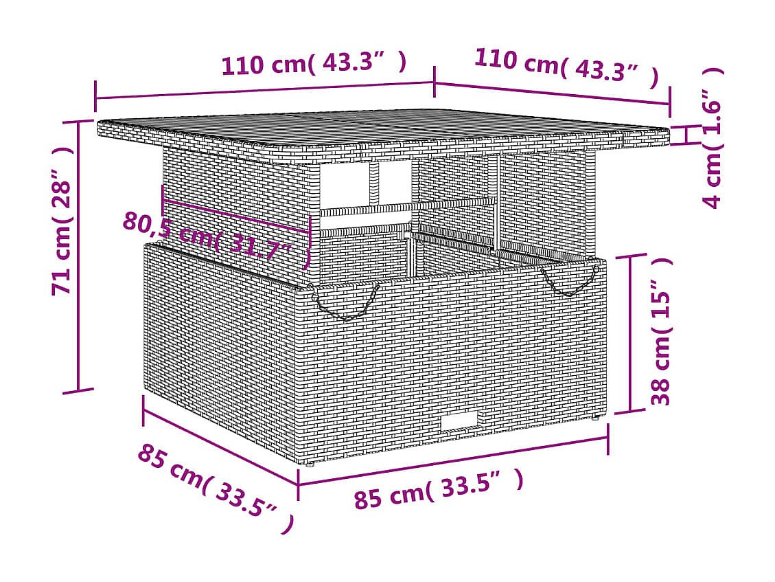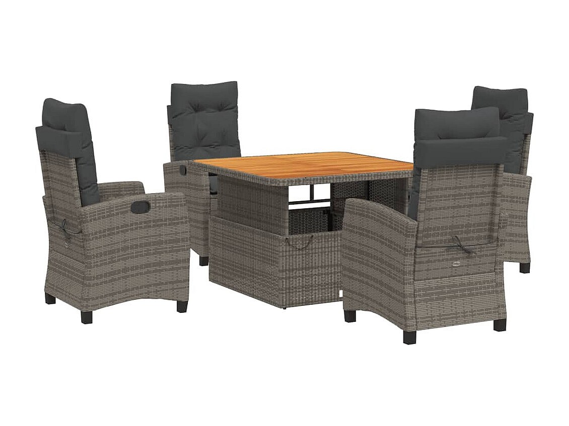 Myrvin 5-delige Tuinset met kussens poly rattan grijs