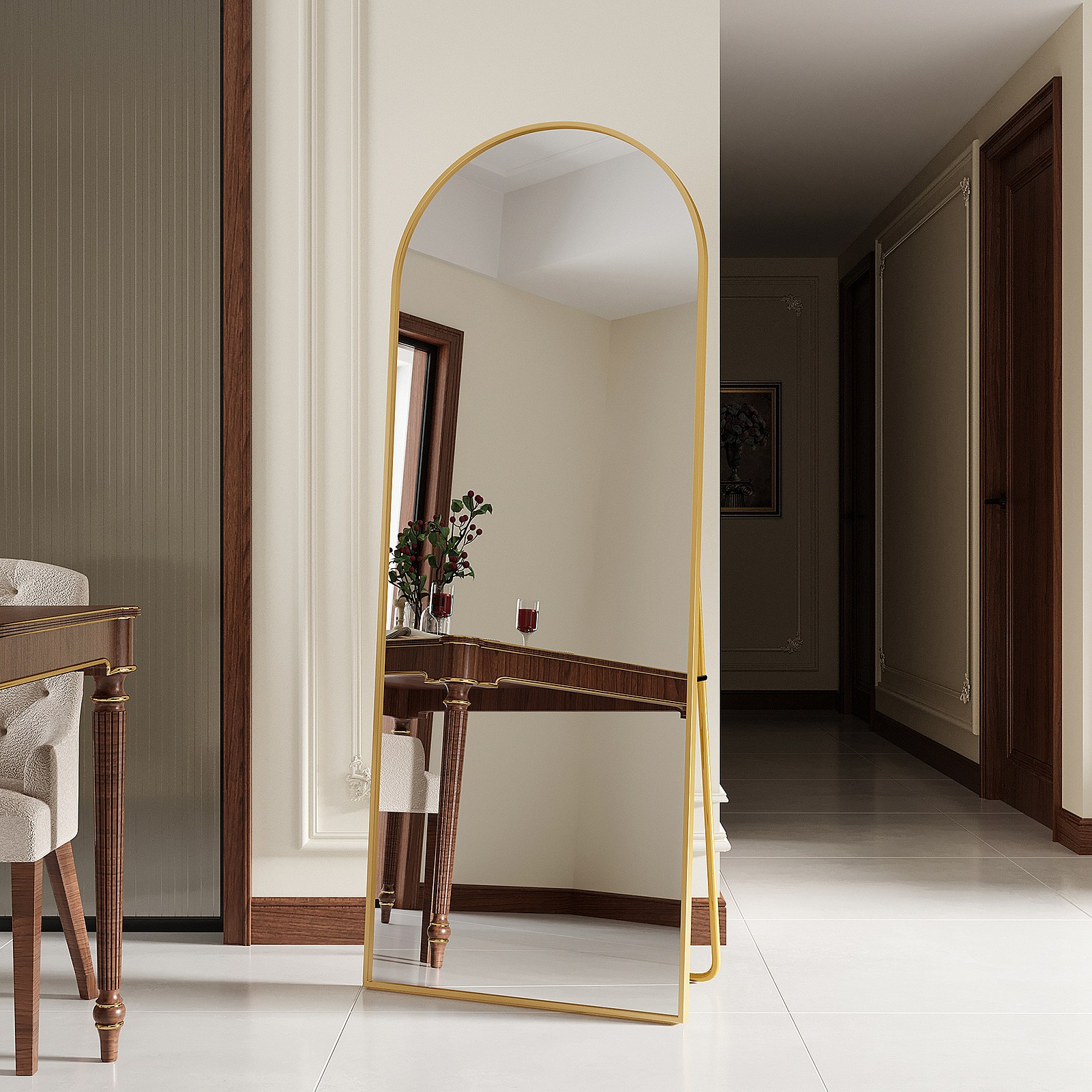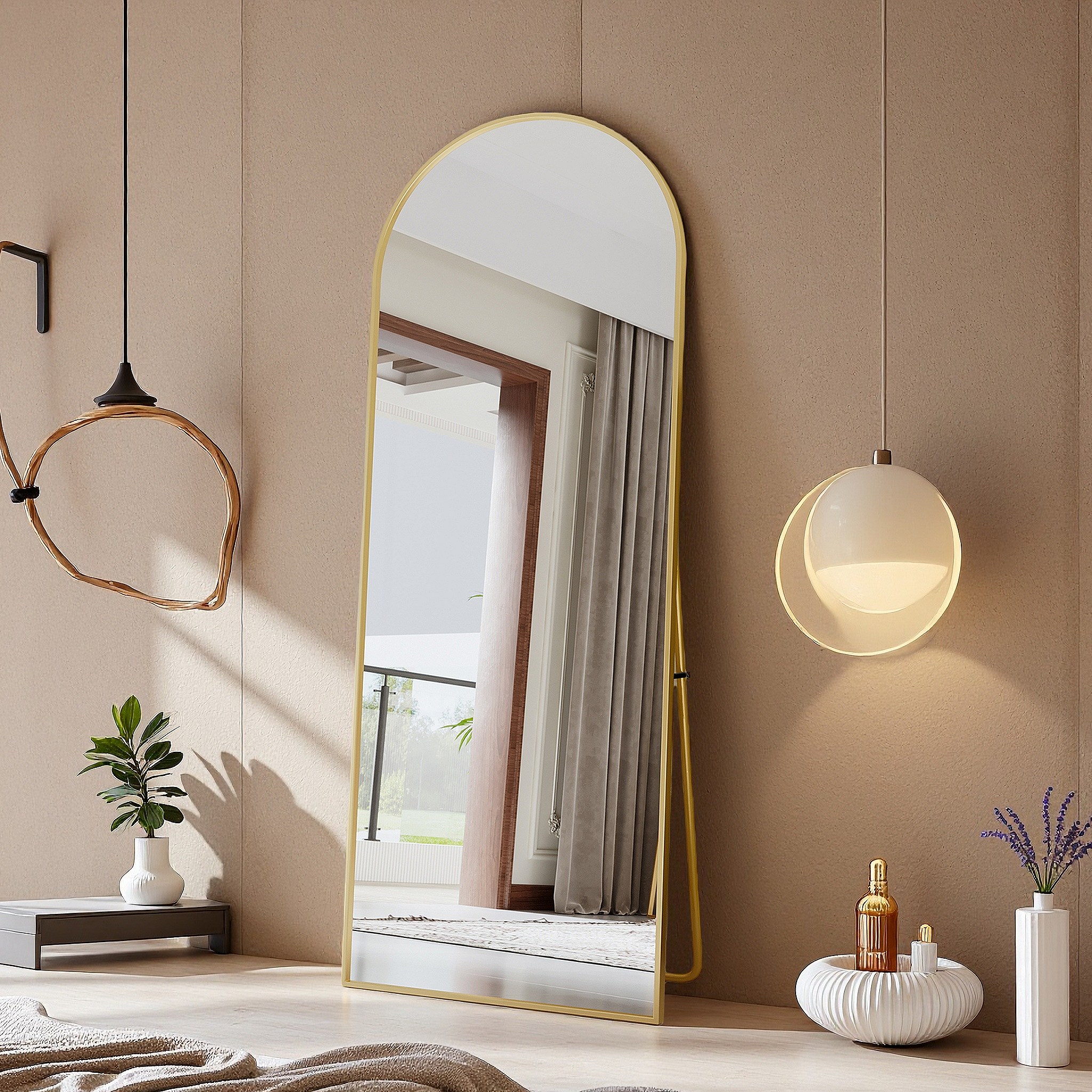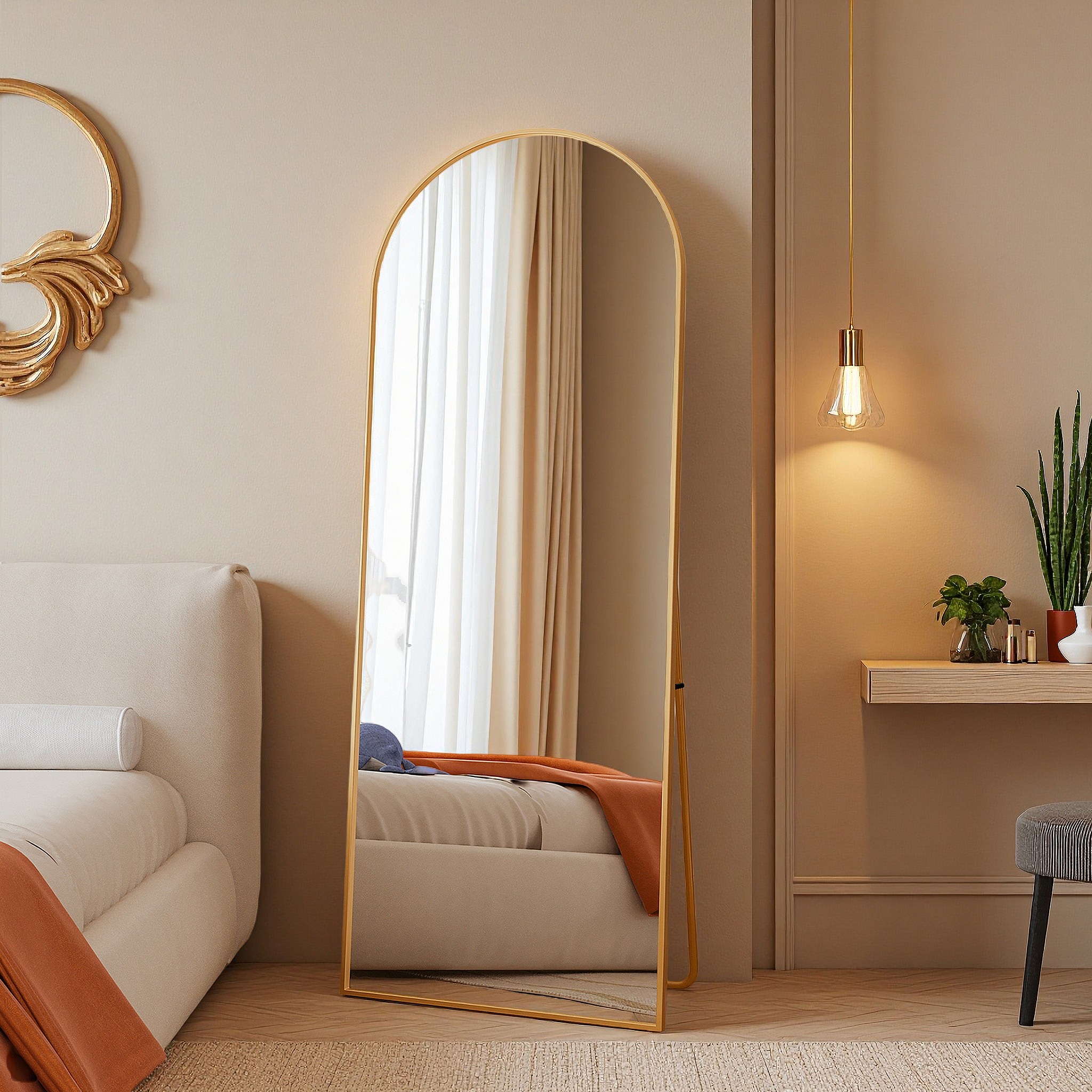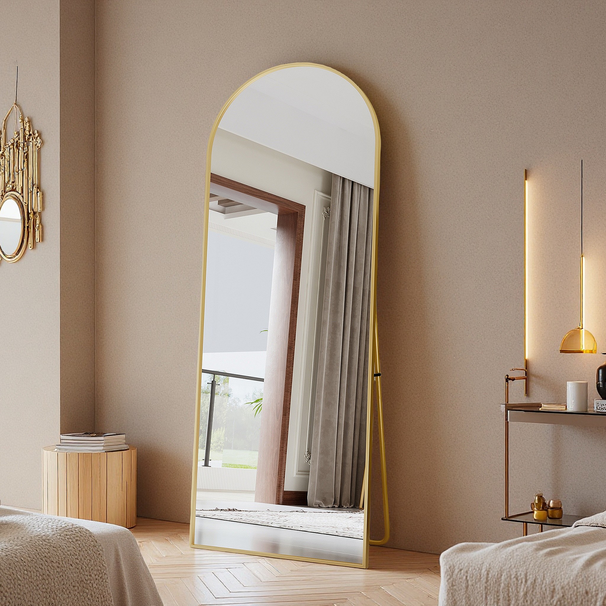 Spiegel 165x60 cm, rechthoekig, staand of hangend, aluminium frame, ideaal voor badkamer, slaapkamer, hal en gang, goudkleurig
