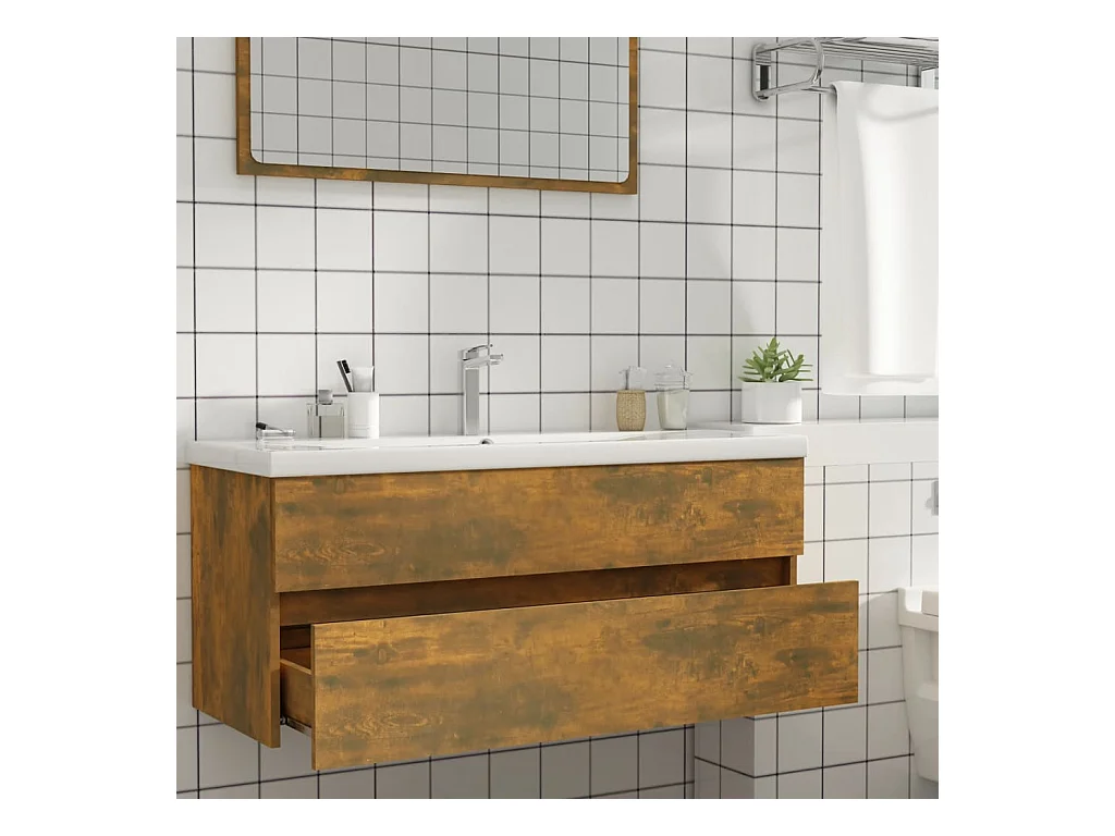 Badkamermeubel 5-delig Gerookt eiken Bewerkt hout