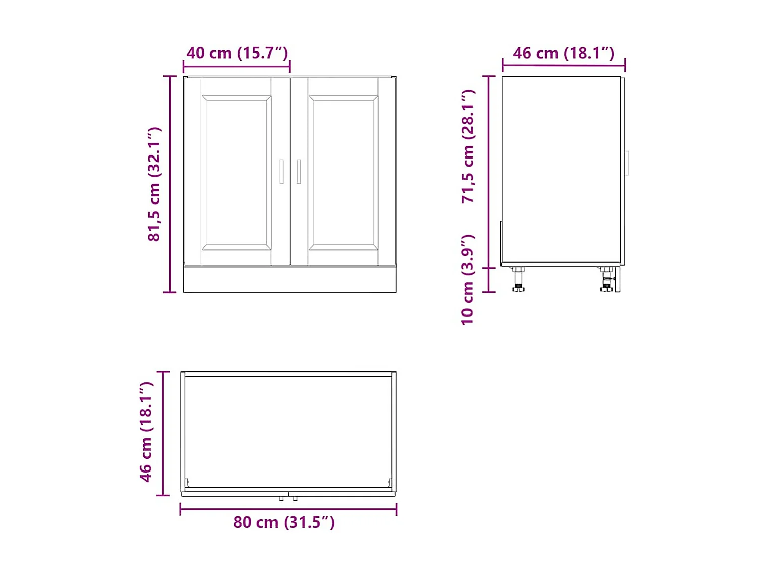 Spoelbakonderkast Porto 80x46x81,5cm bewerkt hout gerookt eiken