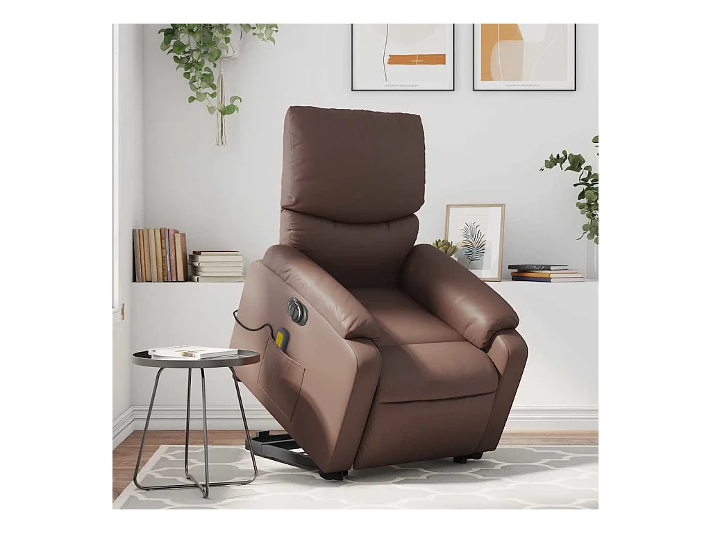 Sta-op-massagestoel elektrisch kunstleer bruin