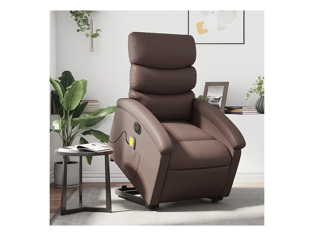 Sta-op-massagestoel elektrisch kunstleer bruin
