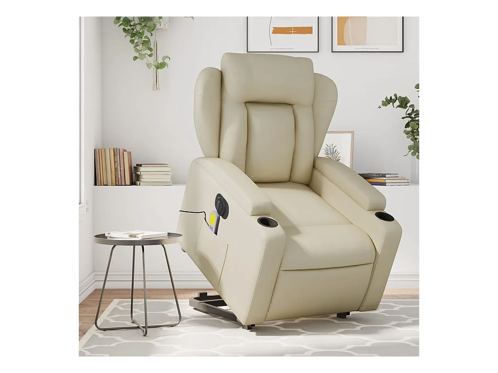 Sta-op-massagestoel elektrisch kunstleer crèmekleurig
