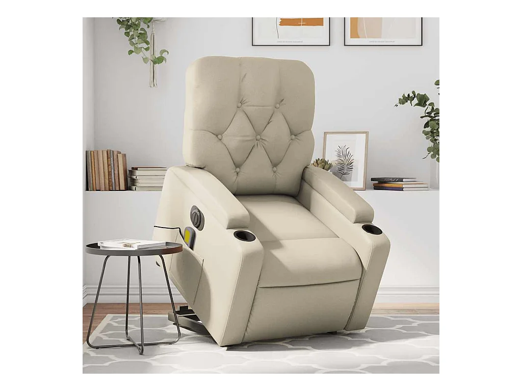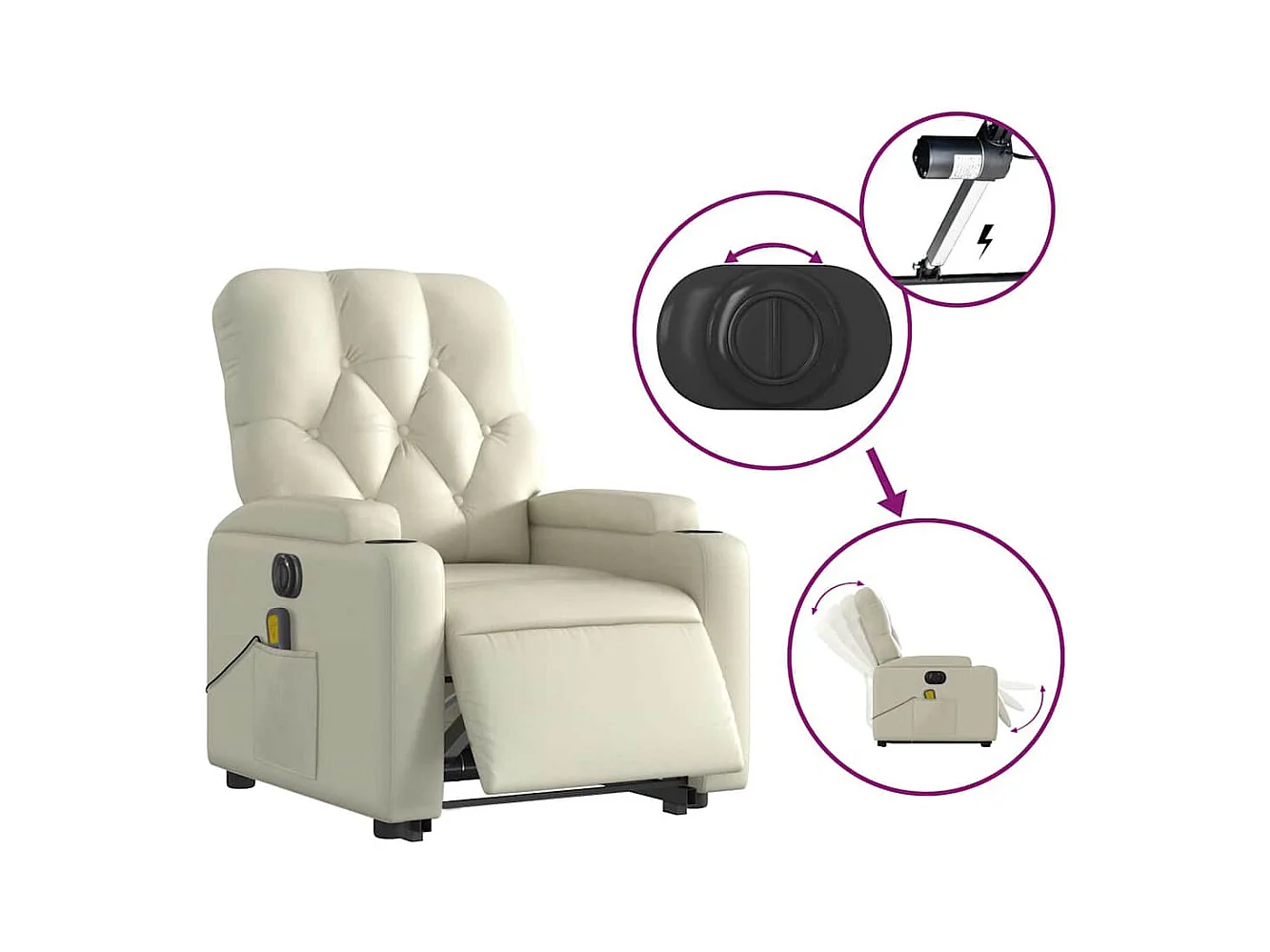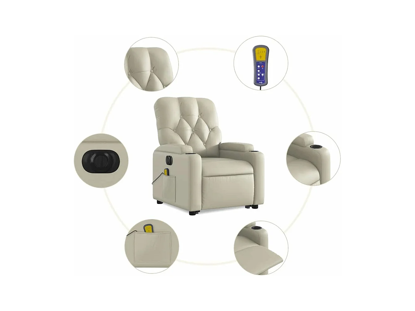 Sta-op-massagestoel elektrisch kunstleer crèmekleurig