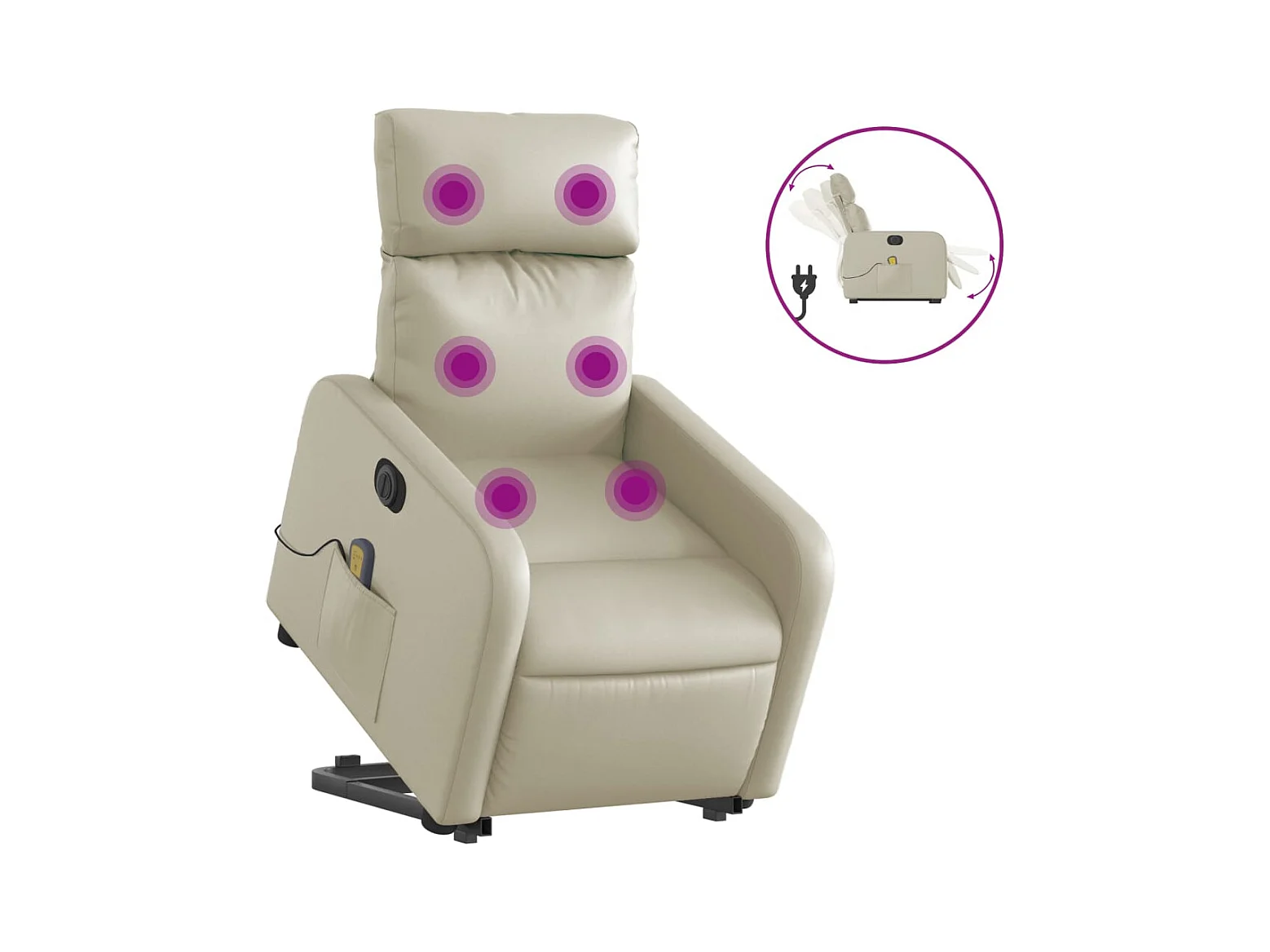 Sta-op-massagestoel elektrisch kunstleer crèmekleurig