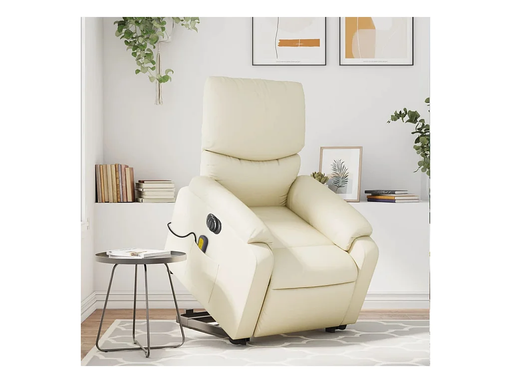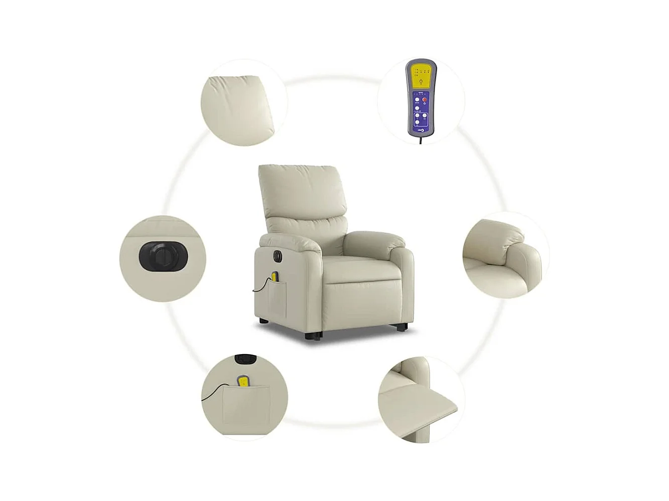 Sta-op-massagestoel elektrisch kunstleer crèmekleurig