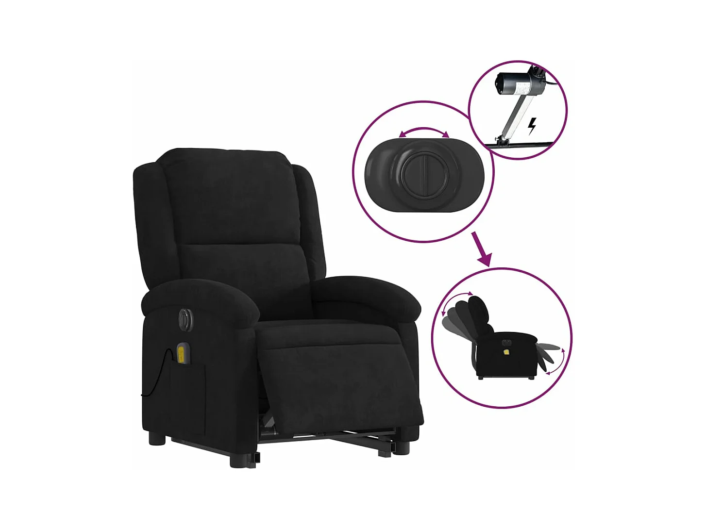 Sta-op-massagestoel elektrisch verstelbaar fluweel zwart