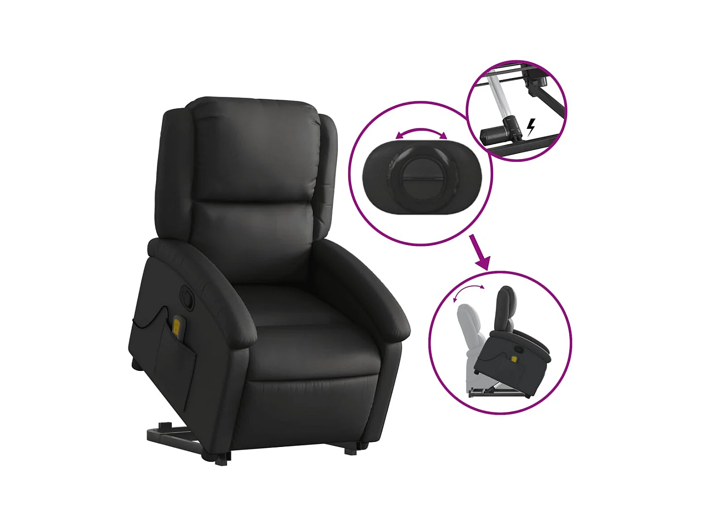 Sta-op-massagestoel verstelbaar echt leer zwart
