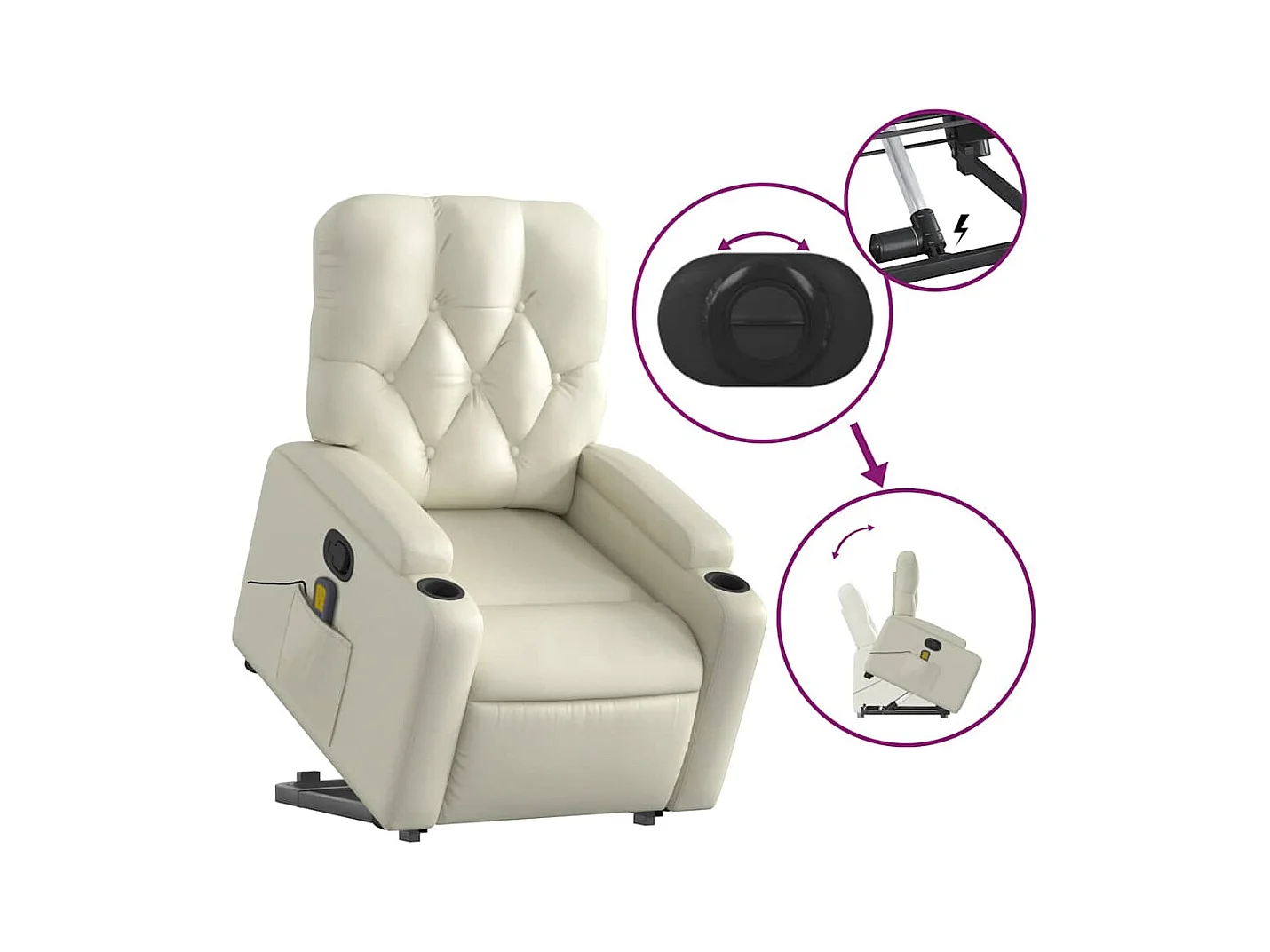Sta-op-massagestoel elektrisch kunstleer crèmekleurig
