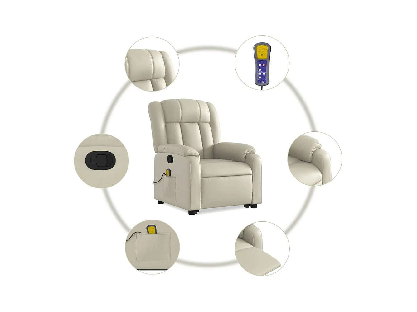 Sta-op-massagestoel elektrisch kunstleer crèmekleurig