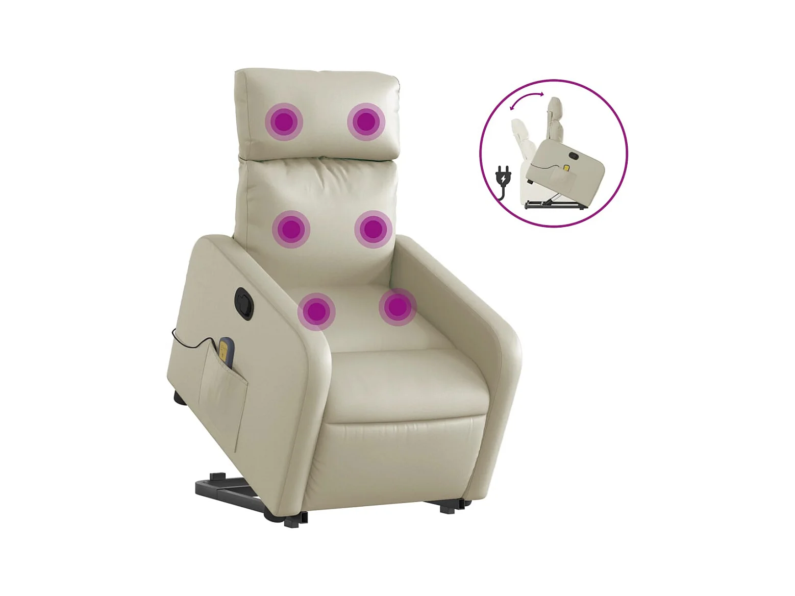 Sta-op-massagestoel elektrisch kunstleer crèmekleurig