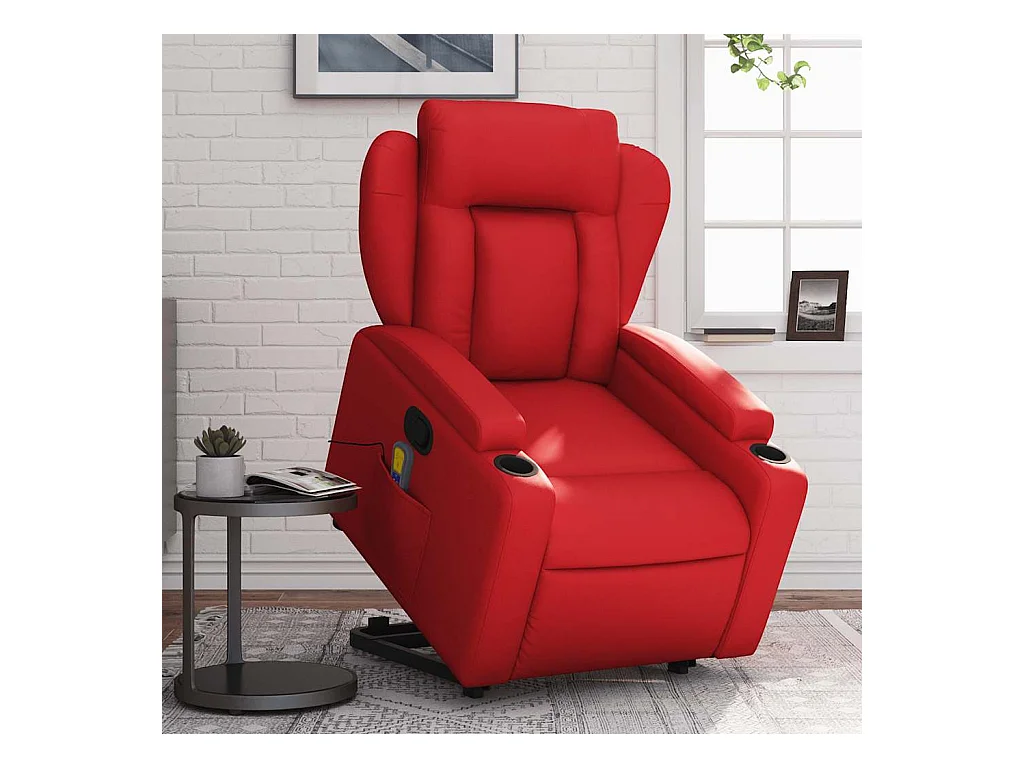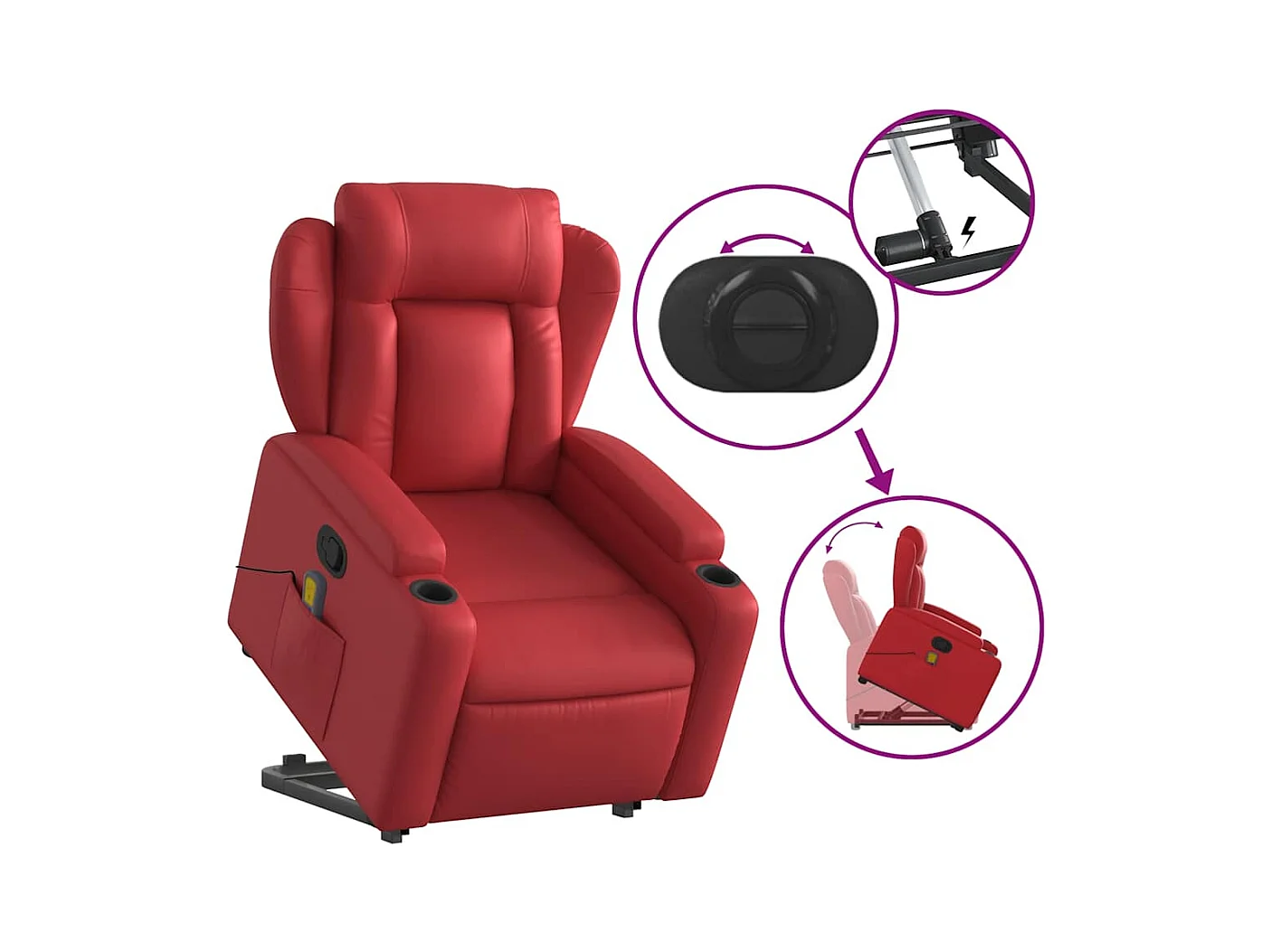 Sta-op-massagestoel elektrisch kunstleer wijnrood