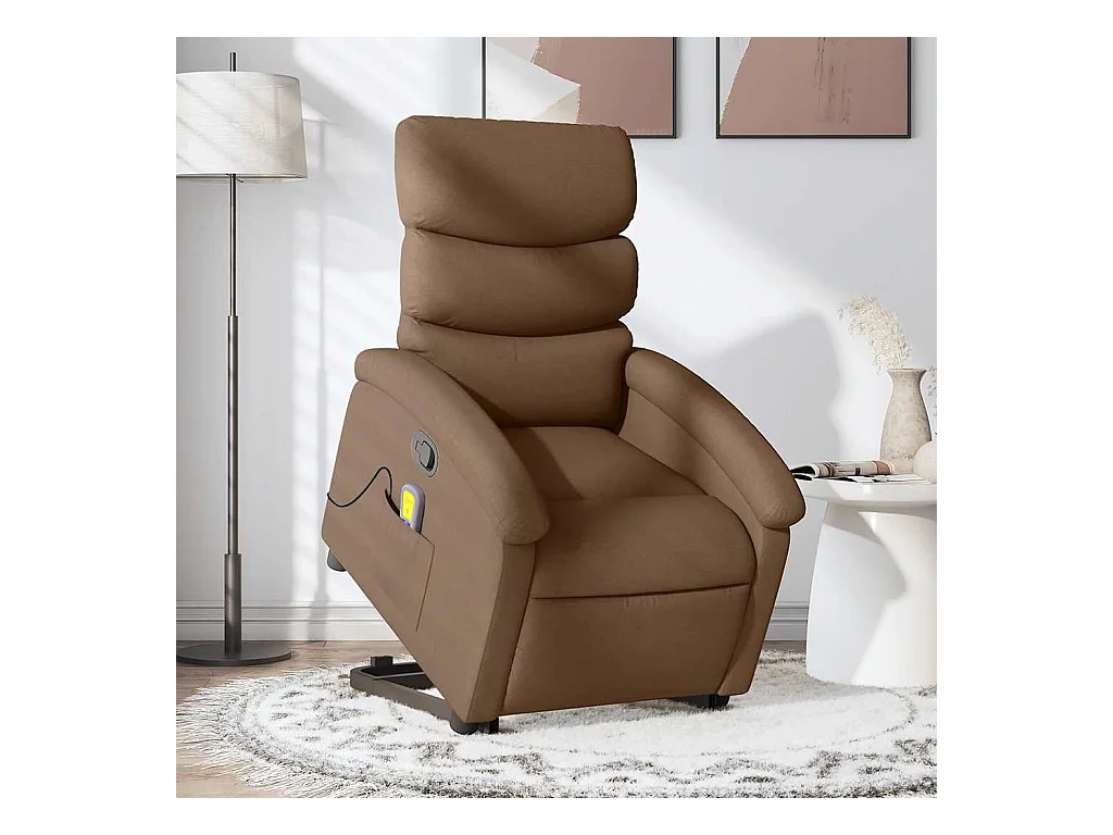 Sta-op-massagestoel elektrisch verstelbaar stof bruin