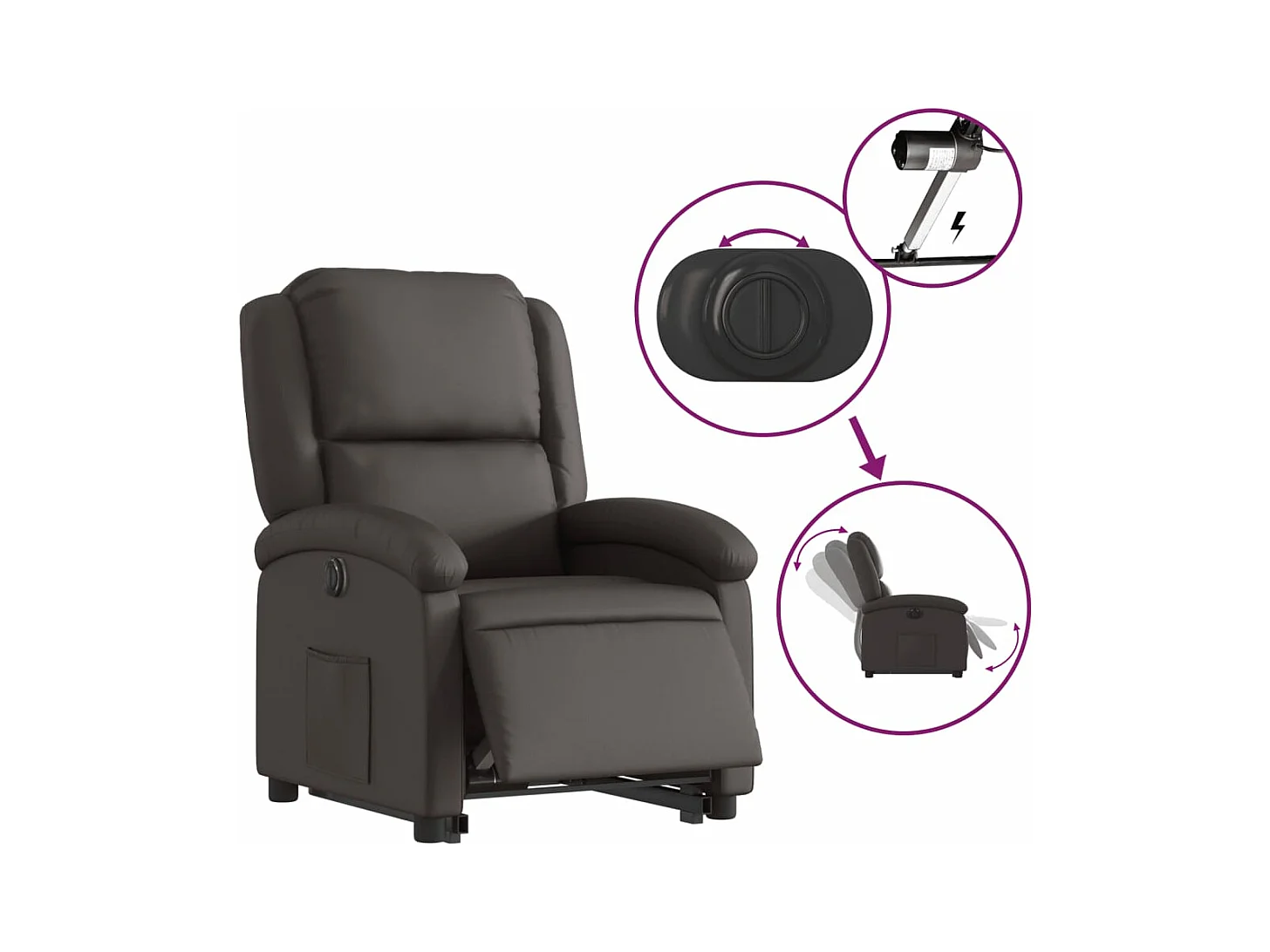 Fauteuil verstelbaar elektrisch echt leer donkerbruin