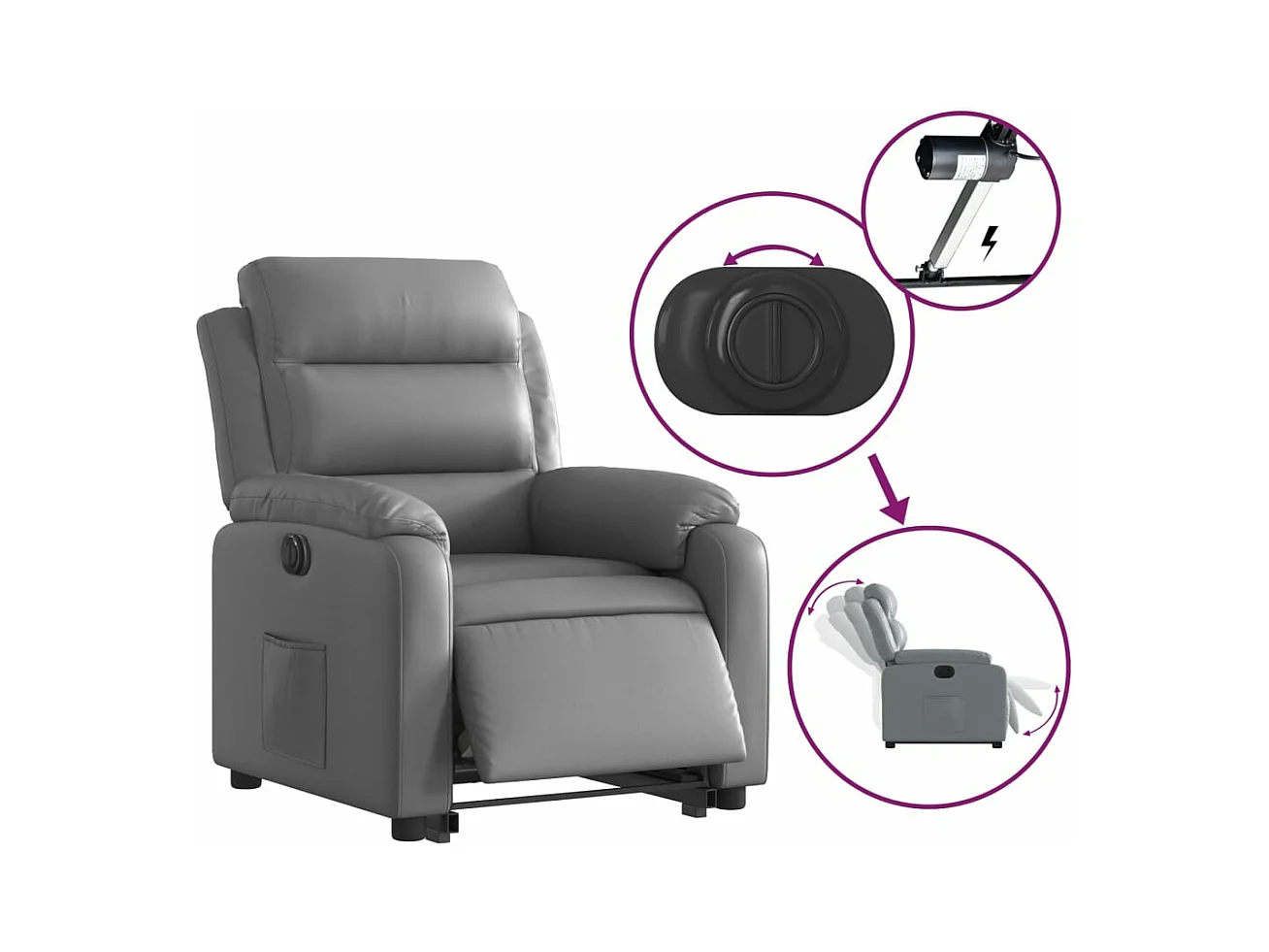 Fauteuil verstelbaar elektrisch kunstleer grijs NL749250