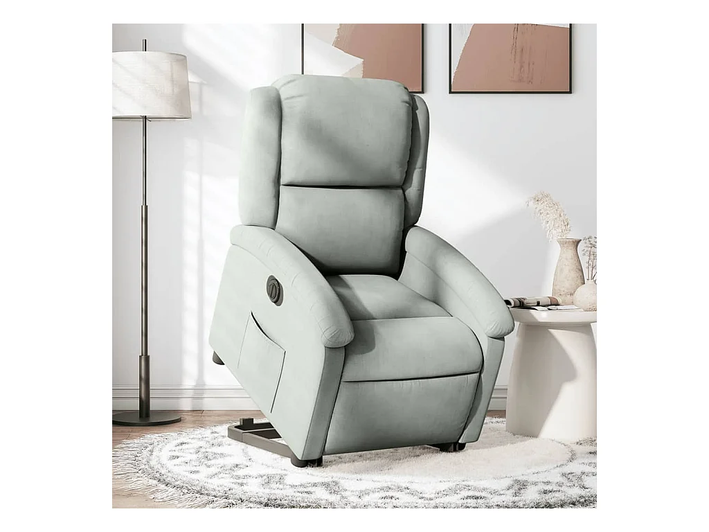 Sta-opstoel elektrisch verstelbaar fluweel lichtgrijs NL580390