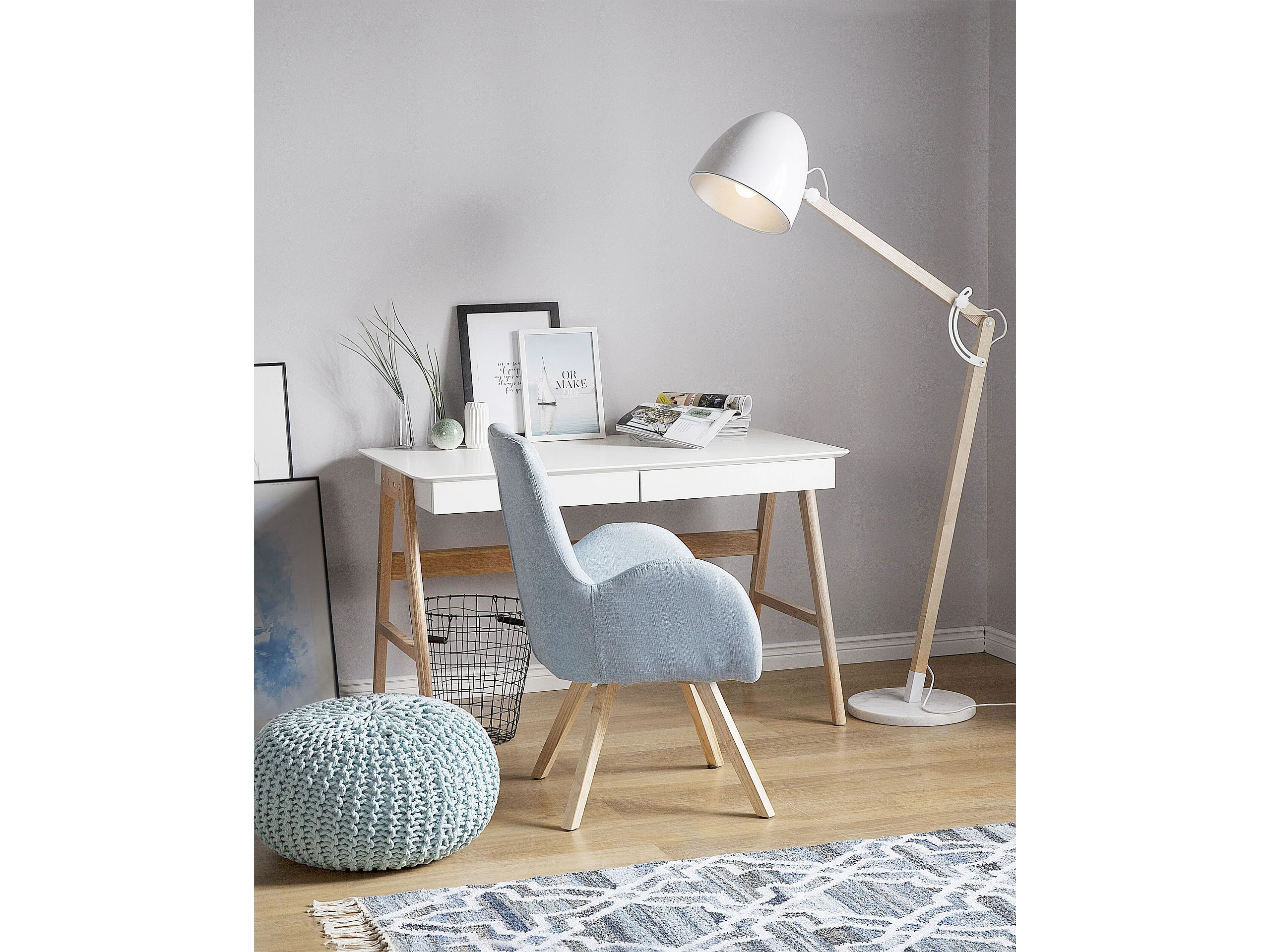 Staande lamp HETTON Verstelbaar Eikenhout Wit
