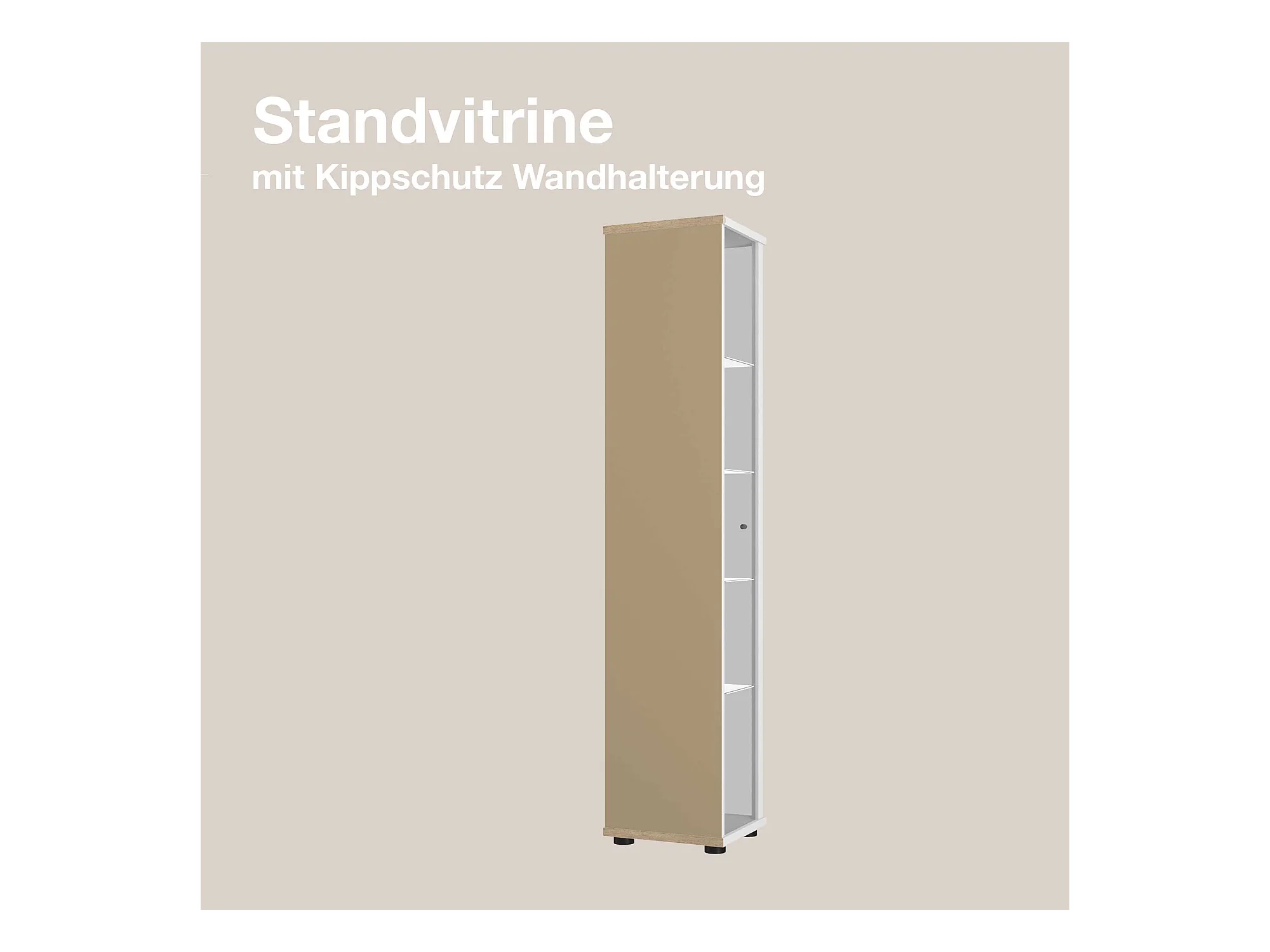 Staande vitrine met 1 deur, 4 in hoogte verstelbare glasplanken - Met LED-verlichting - 176x37x33 cm - Wit